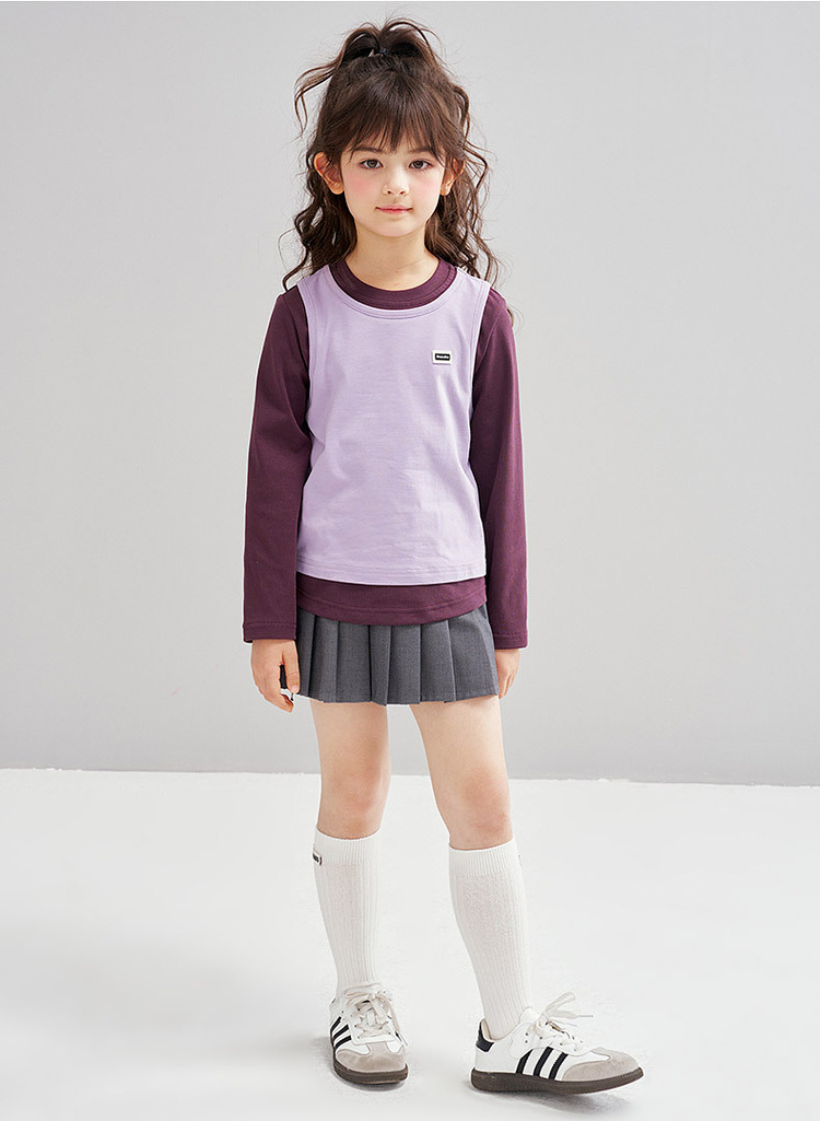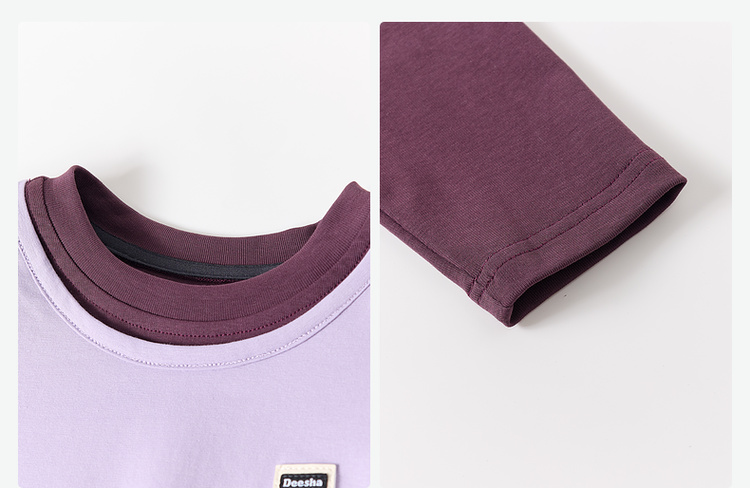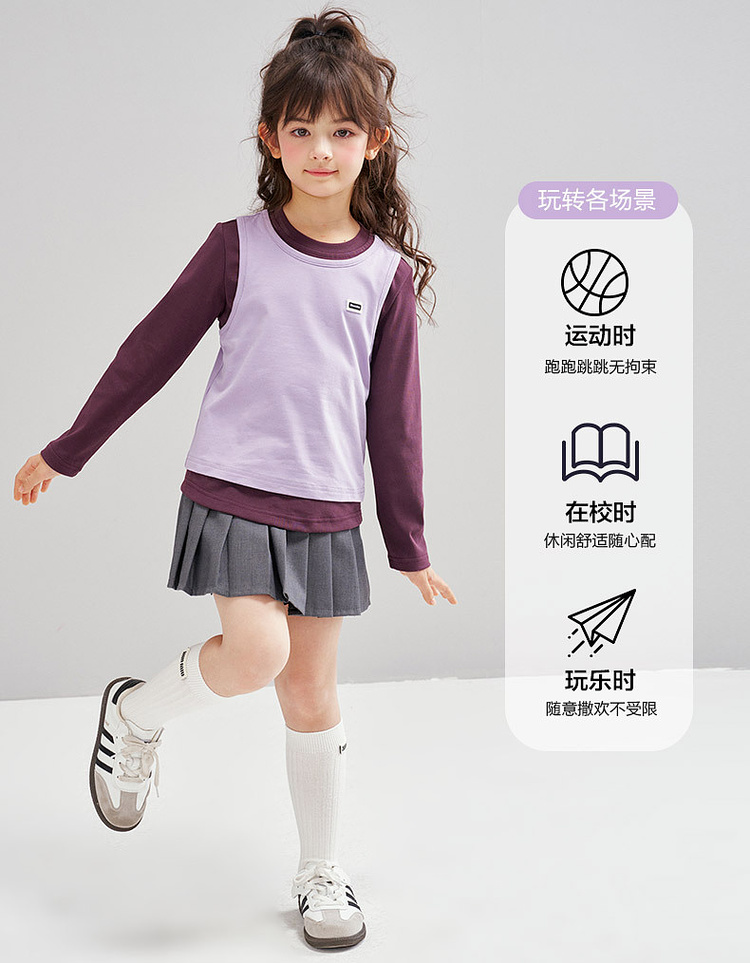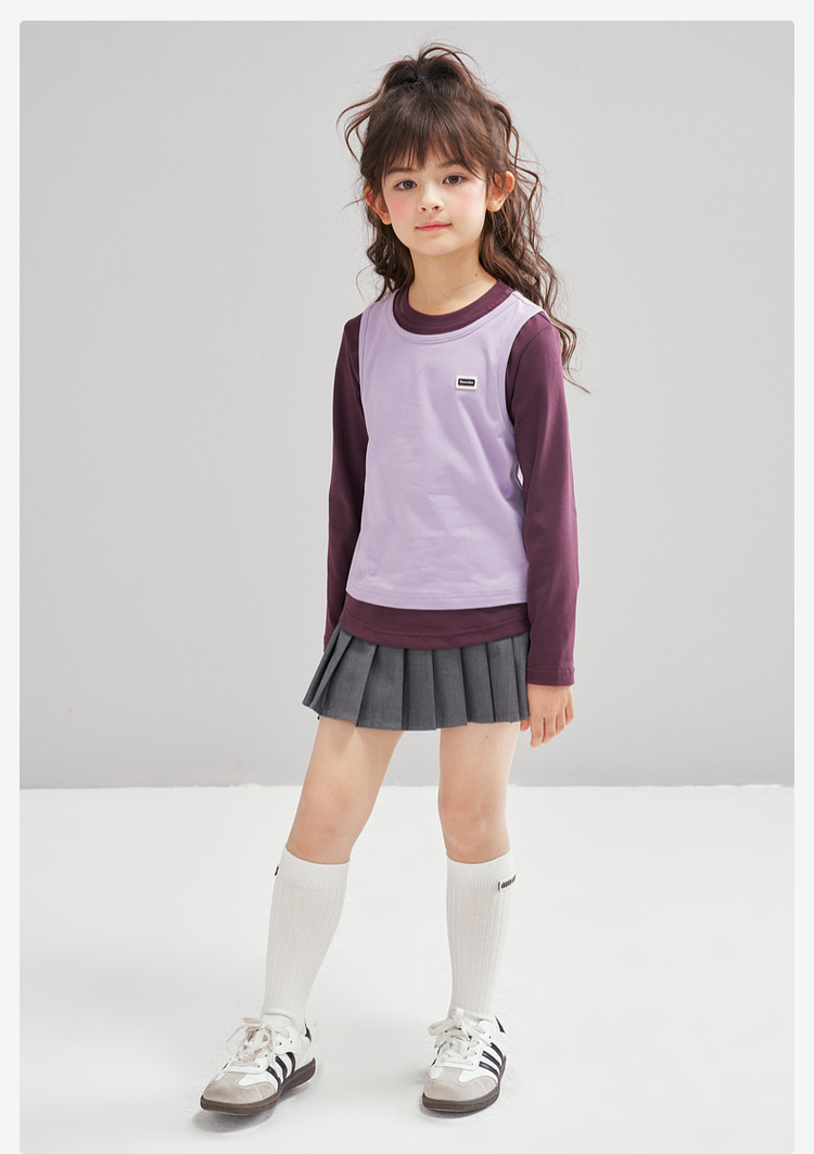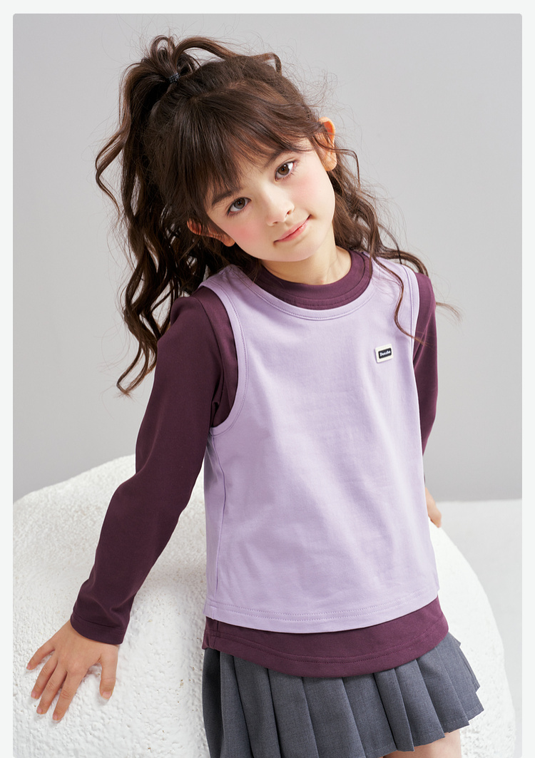 笛莎Deesha 2026春季女童时尚撞色假两件拼接长袖T恤