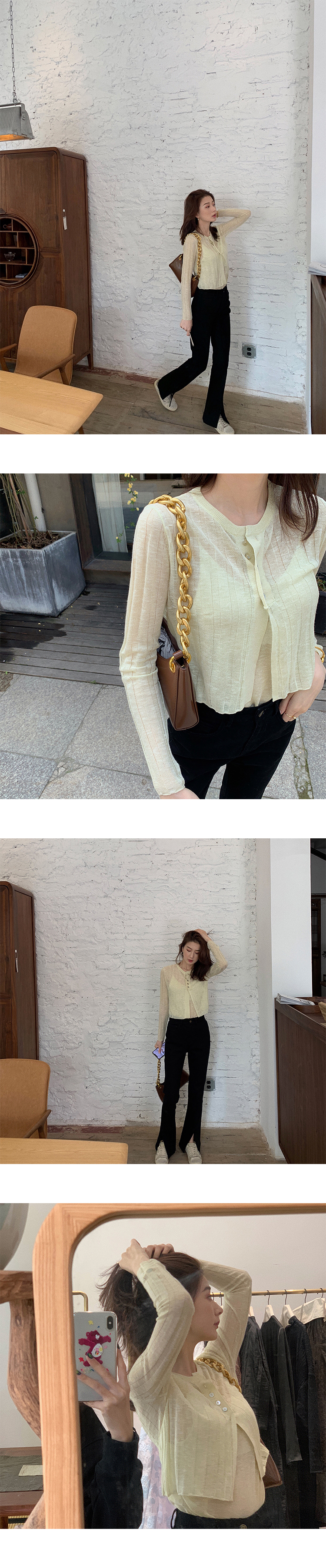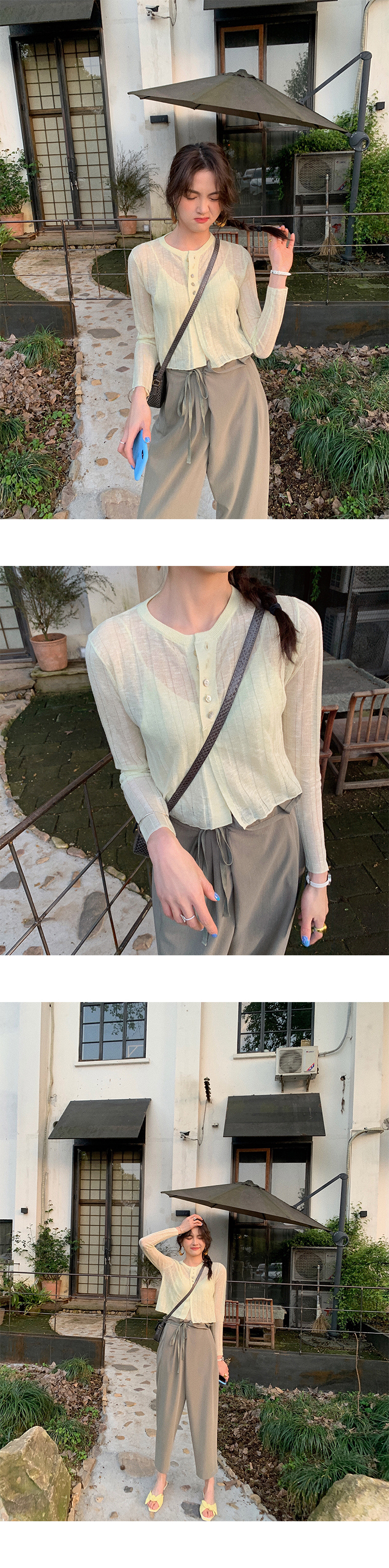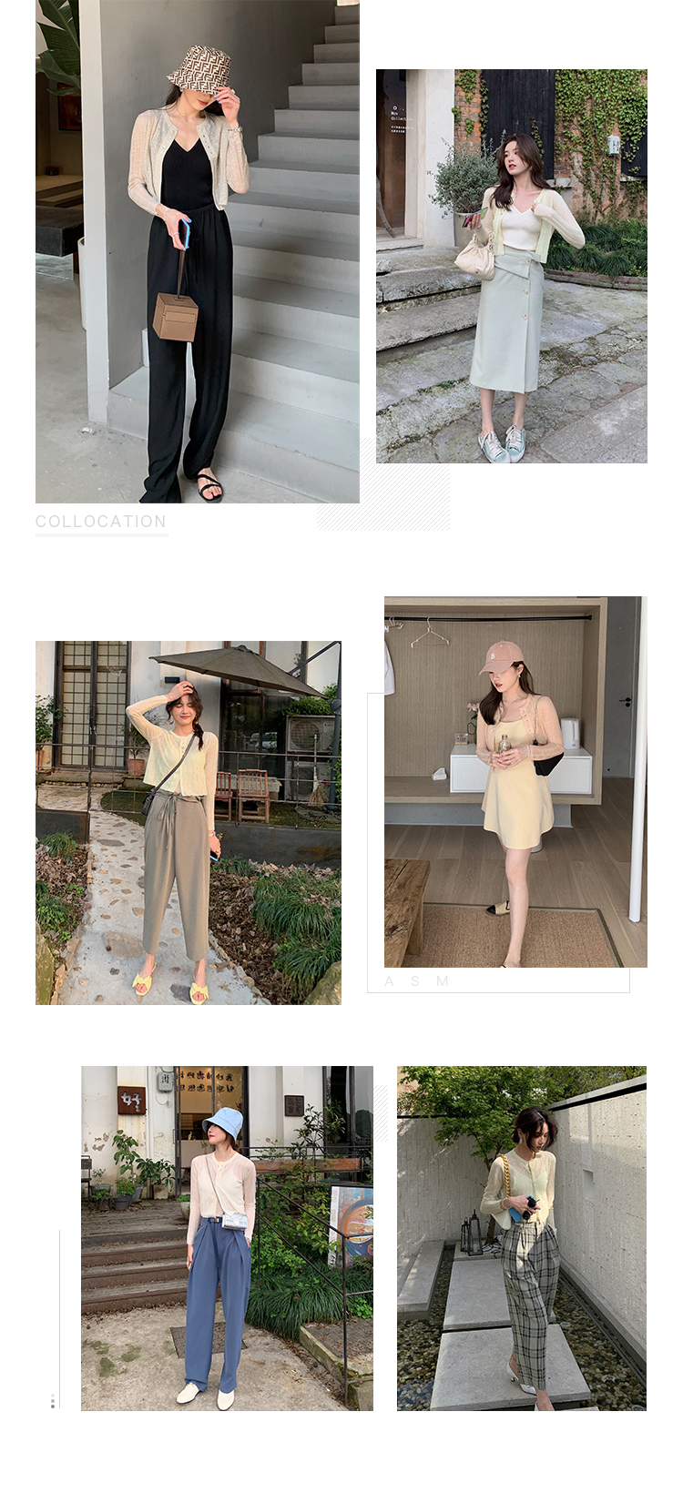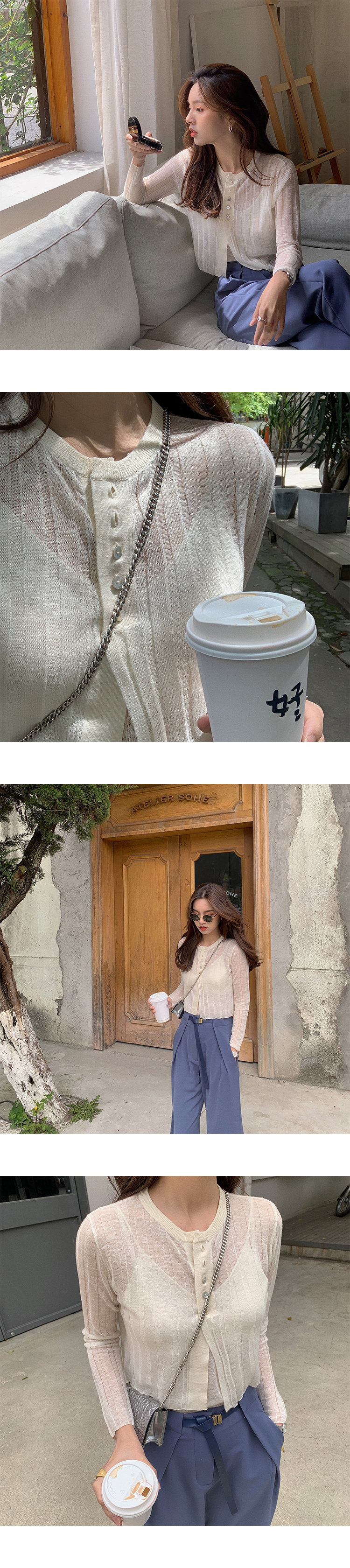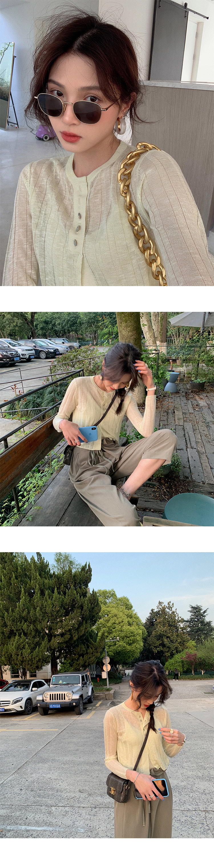 流绪微梦~气质圆领竖纹针织衫 防晒小开衫外套女薄款