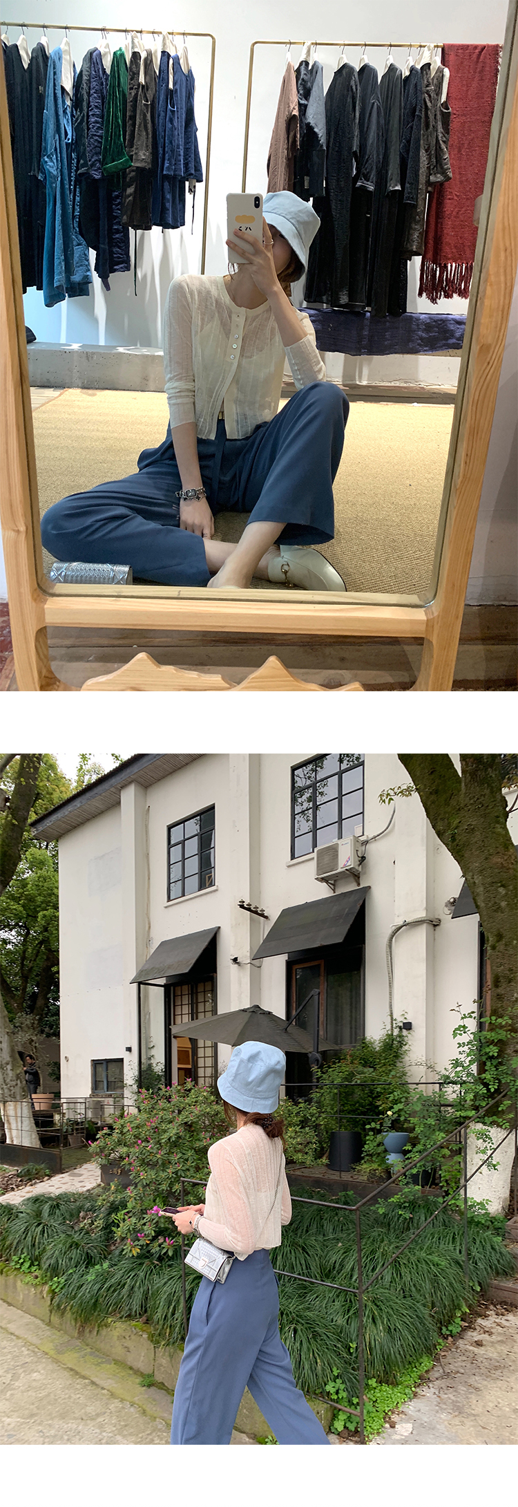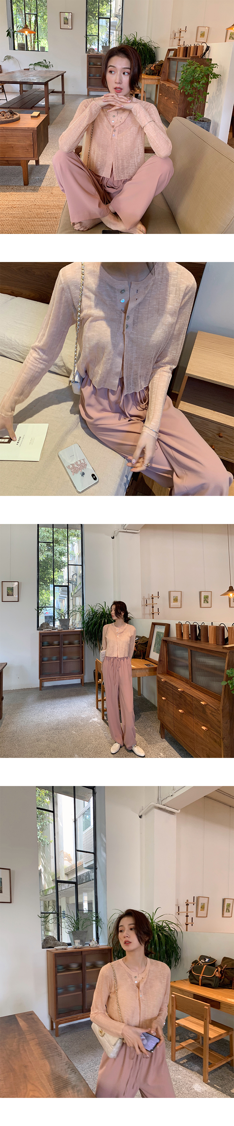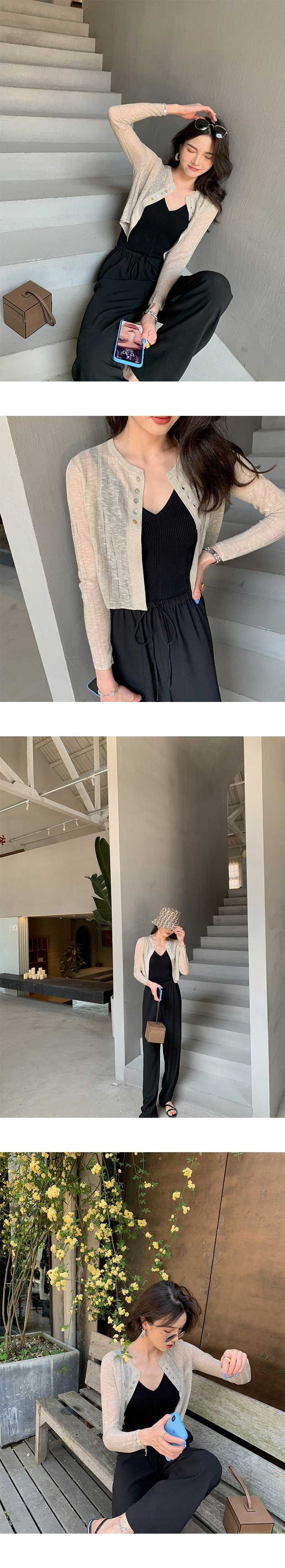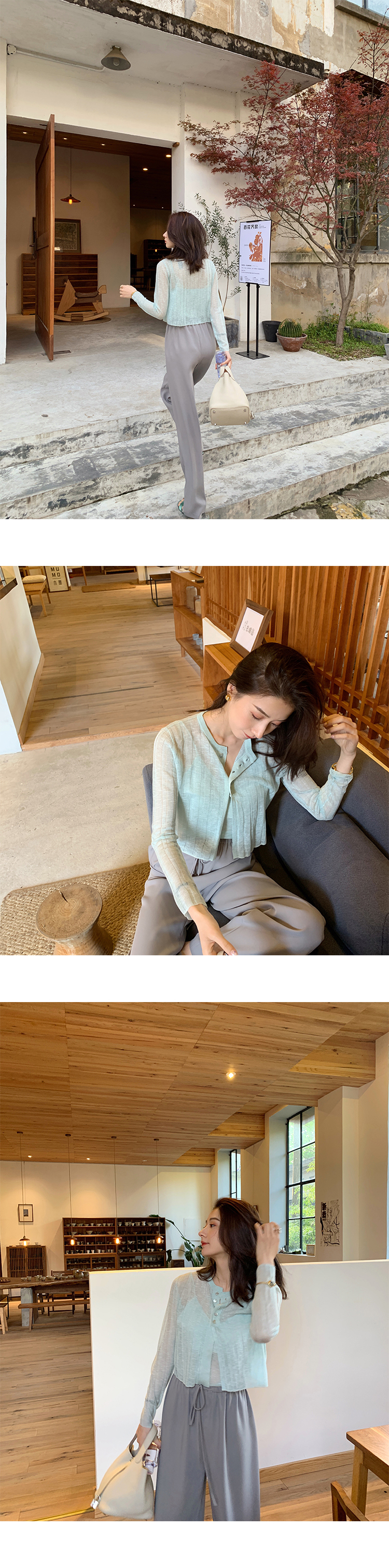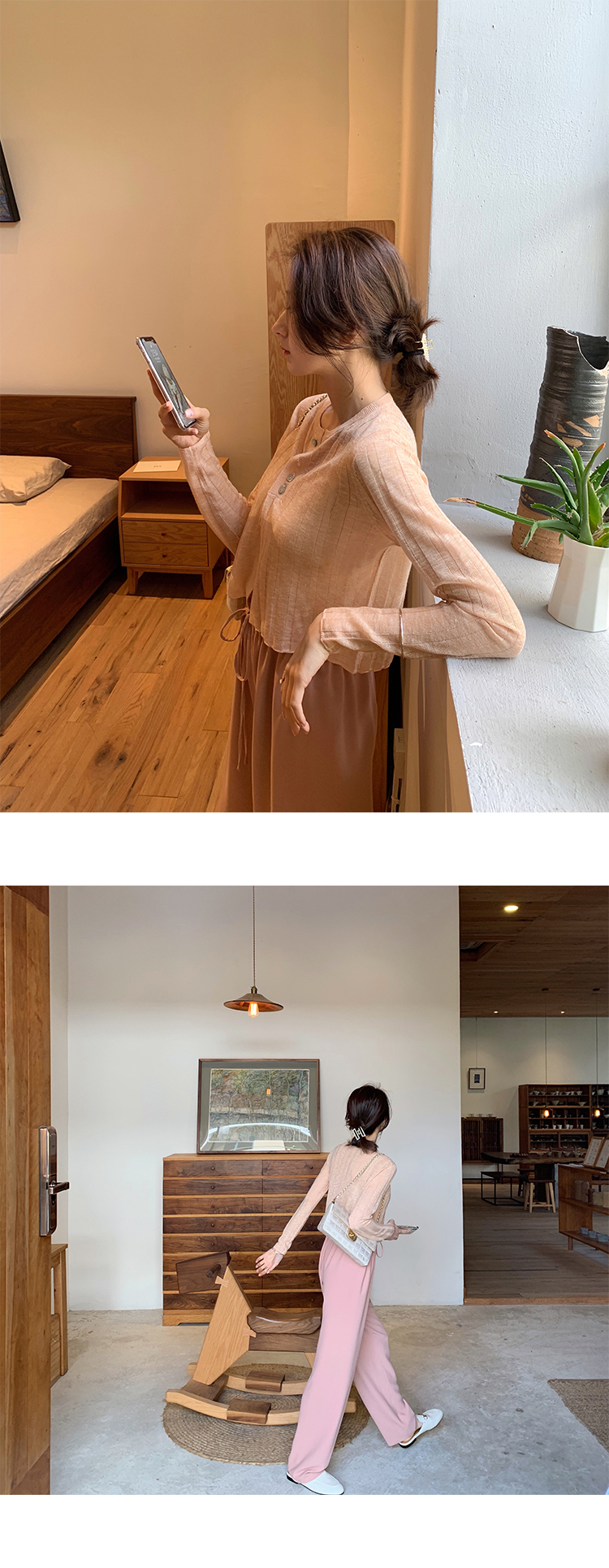 流绪微梦~气质圆领竖纹针织衫 防晒小开衫外套女薄款