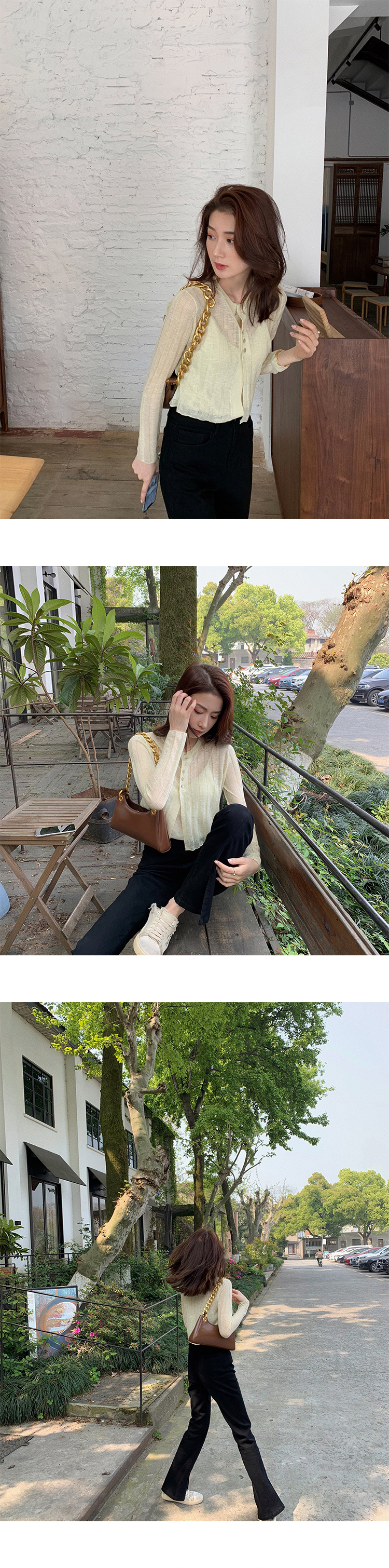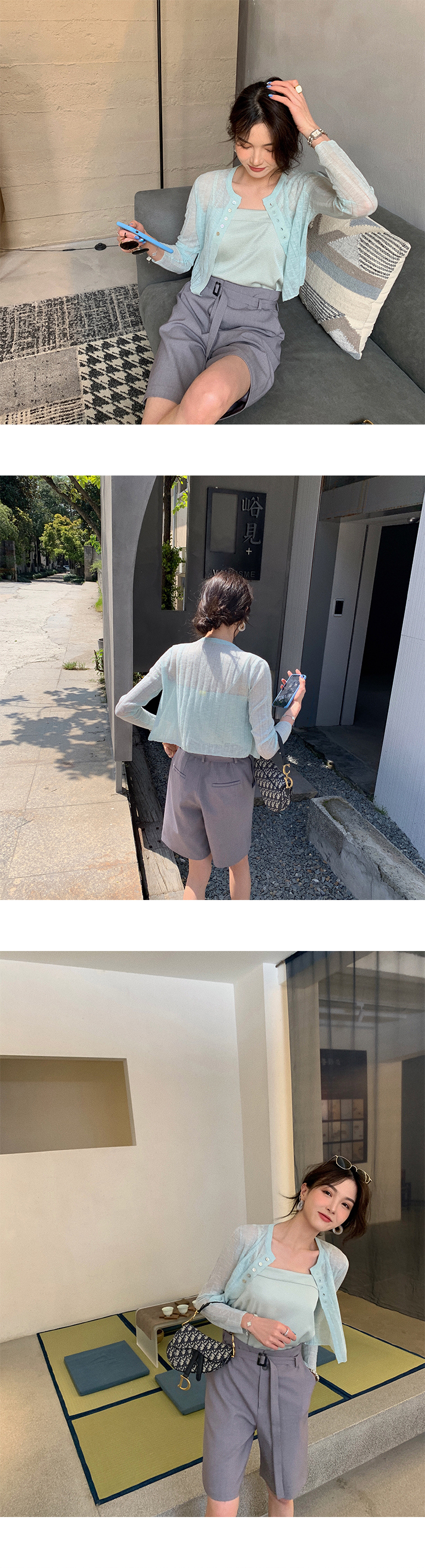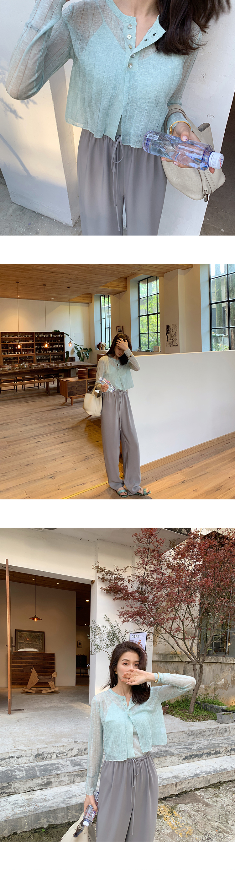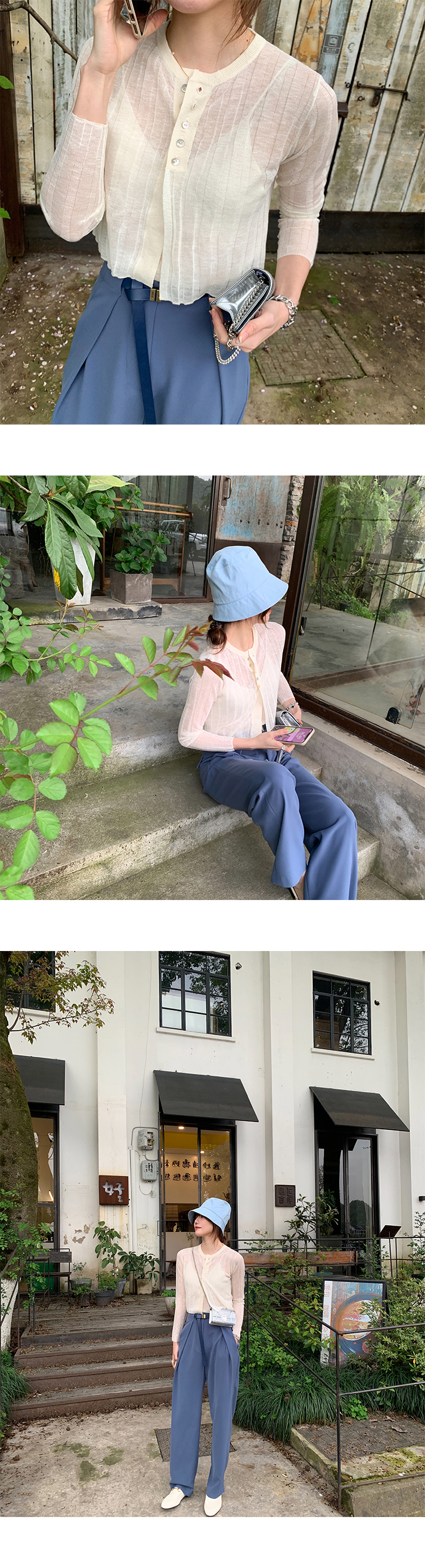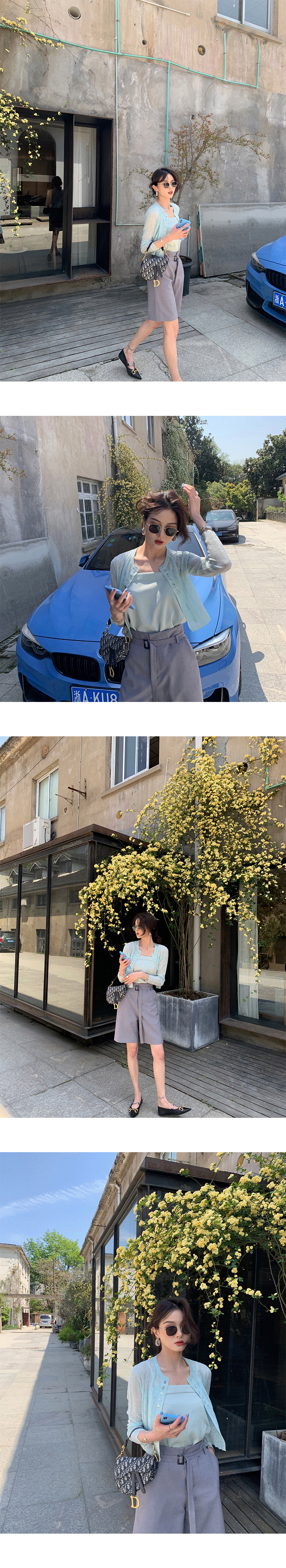 流绪微梦~气质圆领竖纹针织衫 防晒小开衫外套女薄款