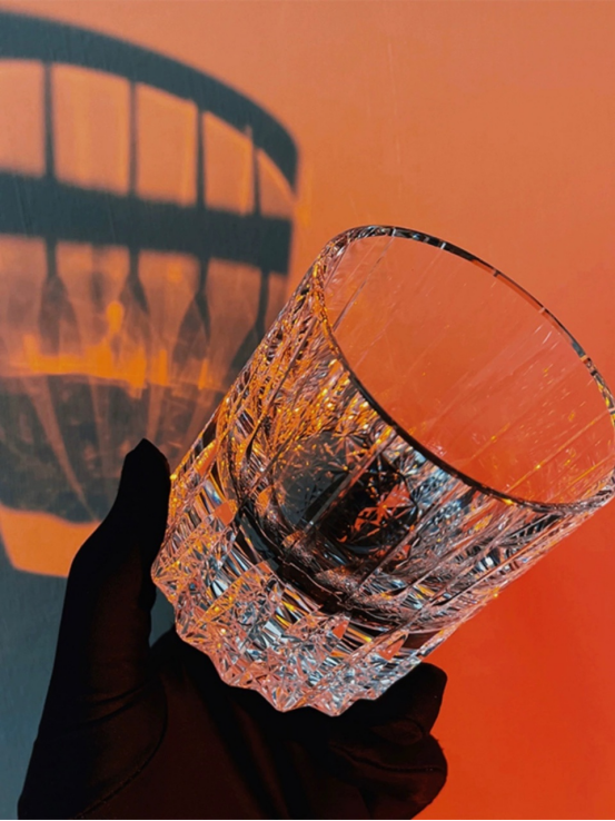 微醺生活有威士忌的夜晚,你不需要赶时间 比起酩酊大醉 戛然而止的微醺,才是最好的状态 微醺间,与真挚的自己,不期而遇 透亮的晶质玻璃,光泽剔透闪耀 欣赏威士忌本身的酒色 手工雕刻立体的文理,上手特有分量感