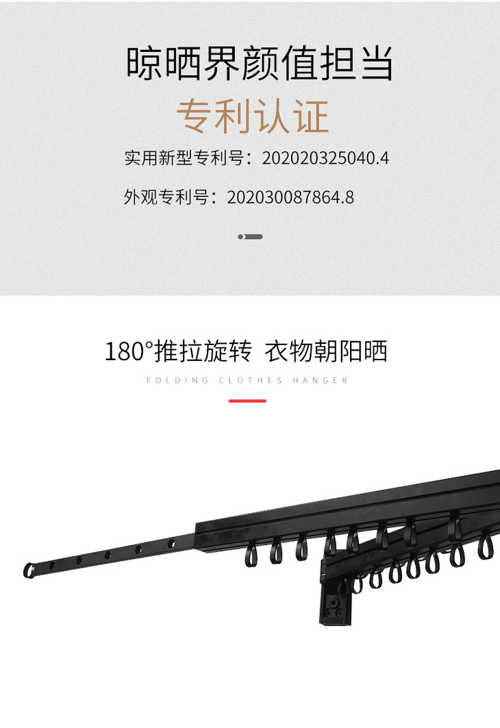 ⑤180°可折叠——让晾晒摆脱空间束缚,180°可旋转收纳晾晒