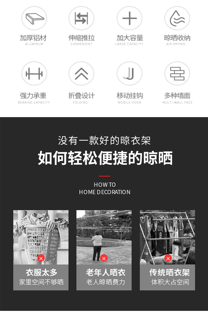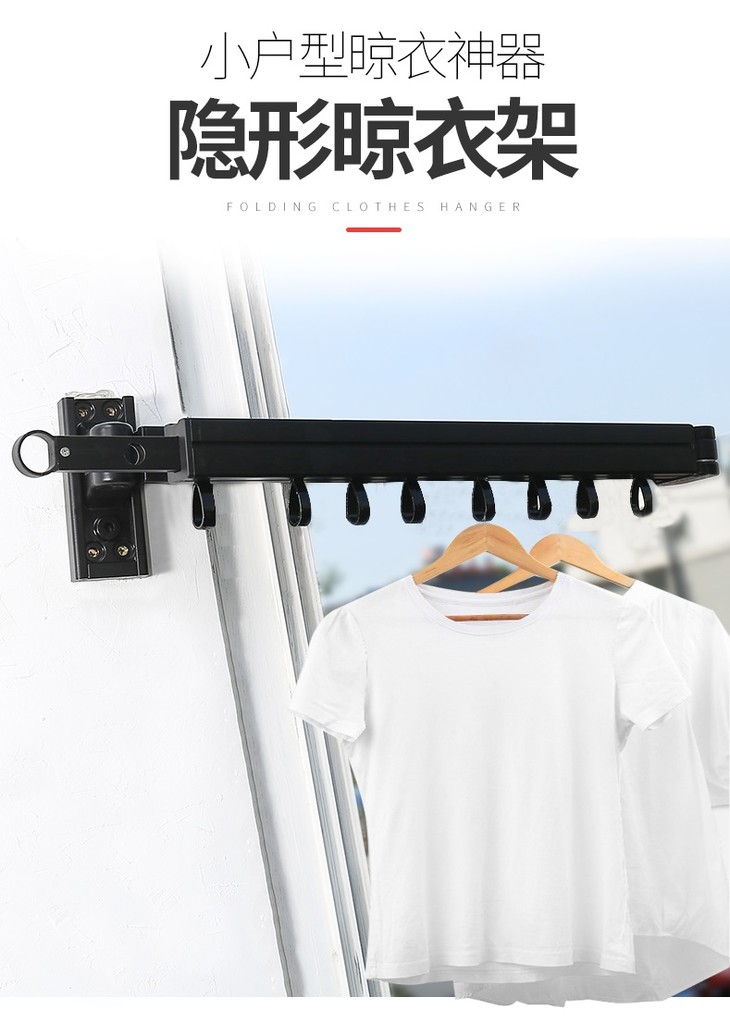 ②占地面积小——折叠壁挂式衣架优化了居室空间,最大化利用空间,尤其适合小户型。晒衣不占地,鸡肋空间不再烦恼