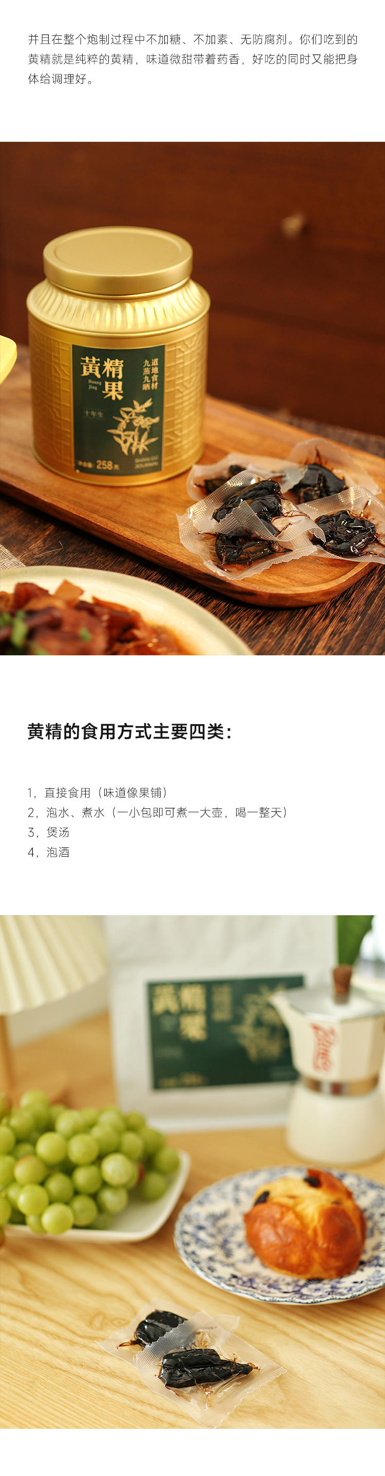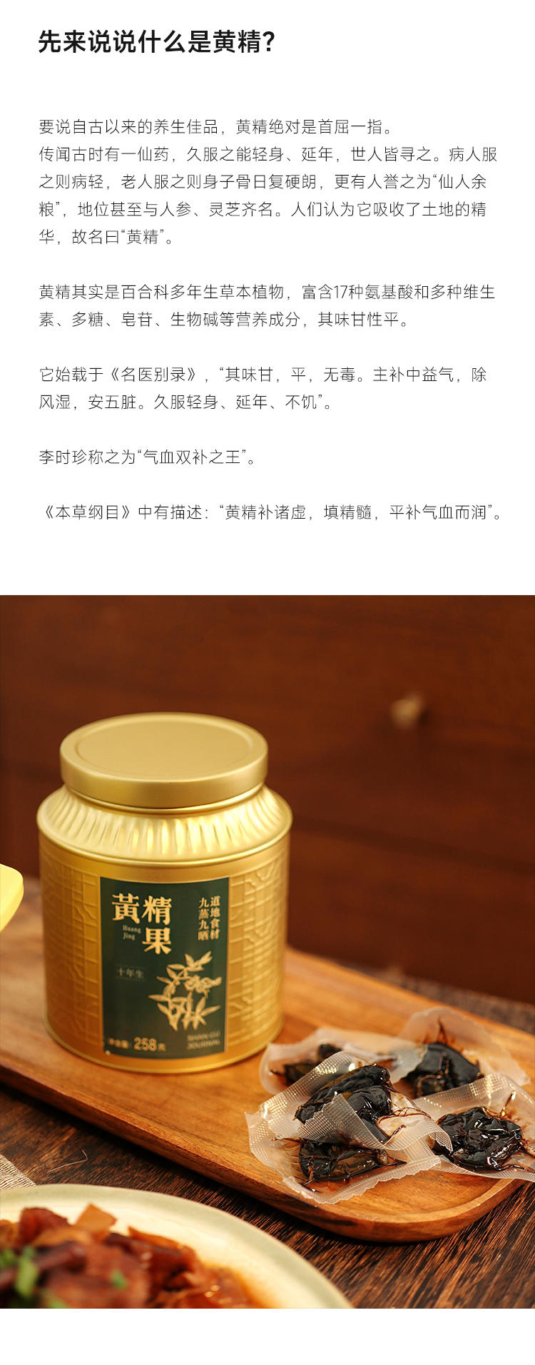 【九蒸九晒 九制黄精】甄选九华山足年黄精 易消化 好吸收 一份258克(17-23个)湖州发货,顺丰极兔随机,可以直接吃(味道像果干),也可以泡水、煮水喝,一小包可以煮水喝一整天;也可以煲汤、泡酒