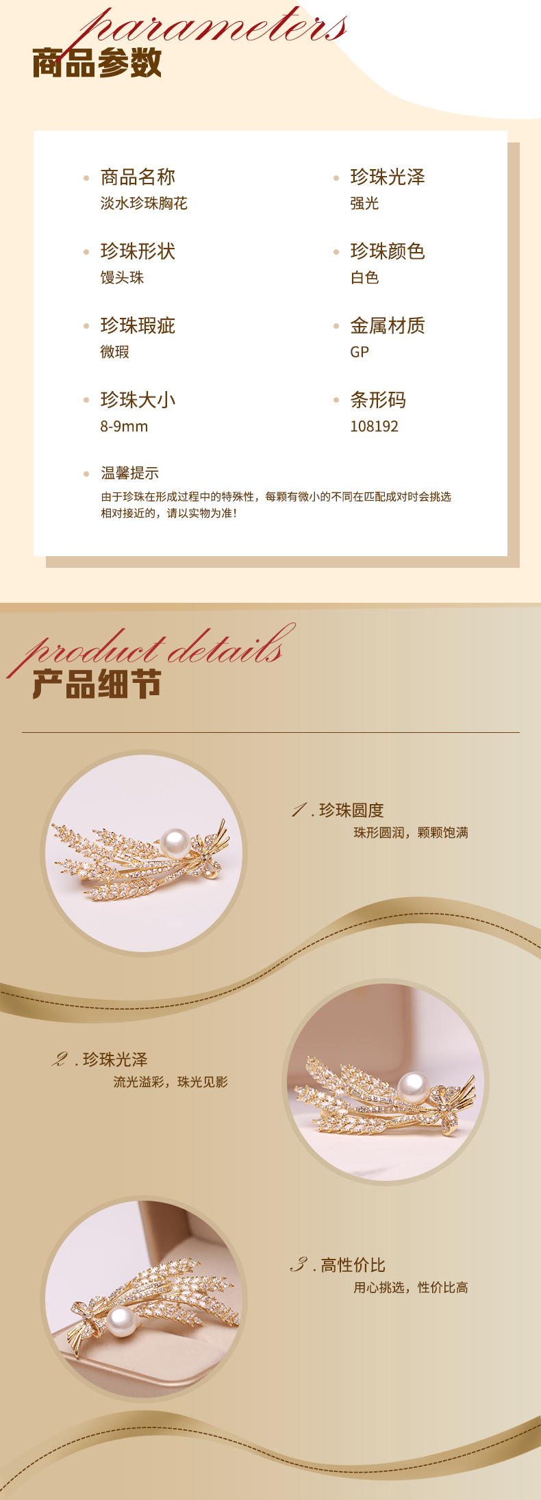 美裕 淡水珍珠胸花8-9mm 108192