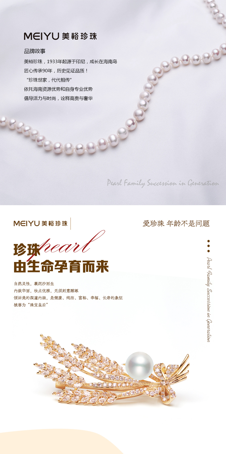 珍珠世家,代代相传。美裕珍珠,1933年起源于印尼,成长于海南岛。依托海南资源优势和自身专业优势,以经营南珠、南洋珠为主,专注于珍珠文化的挖掘和传播,把珍珠代表的爱意,永不间断地传承下去。