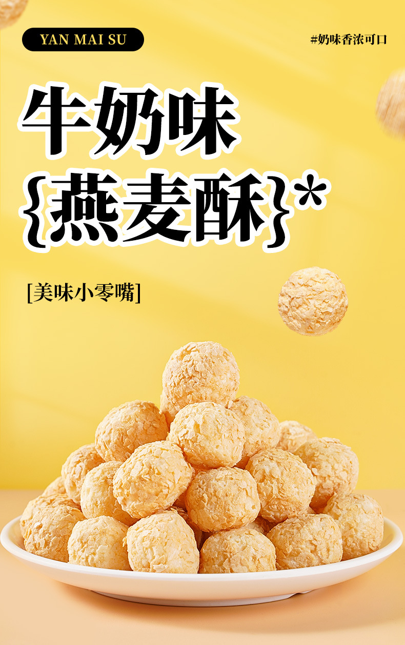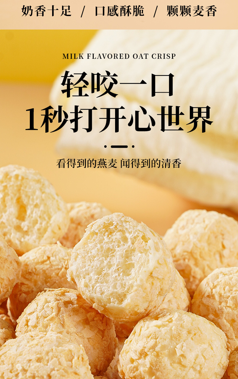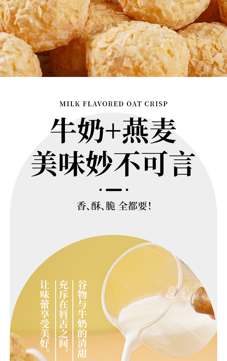 觅食严选【39.9抢约100包!牛奶燕麦球】营养又美味,满口的奶香和燕麦的香气扑面而来。香脆休闲零食奶香燕麦酥独立包装