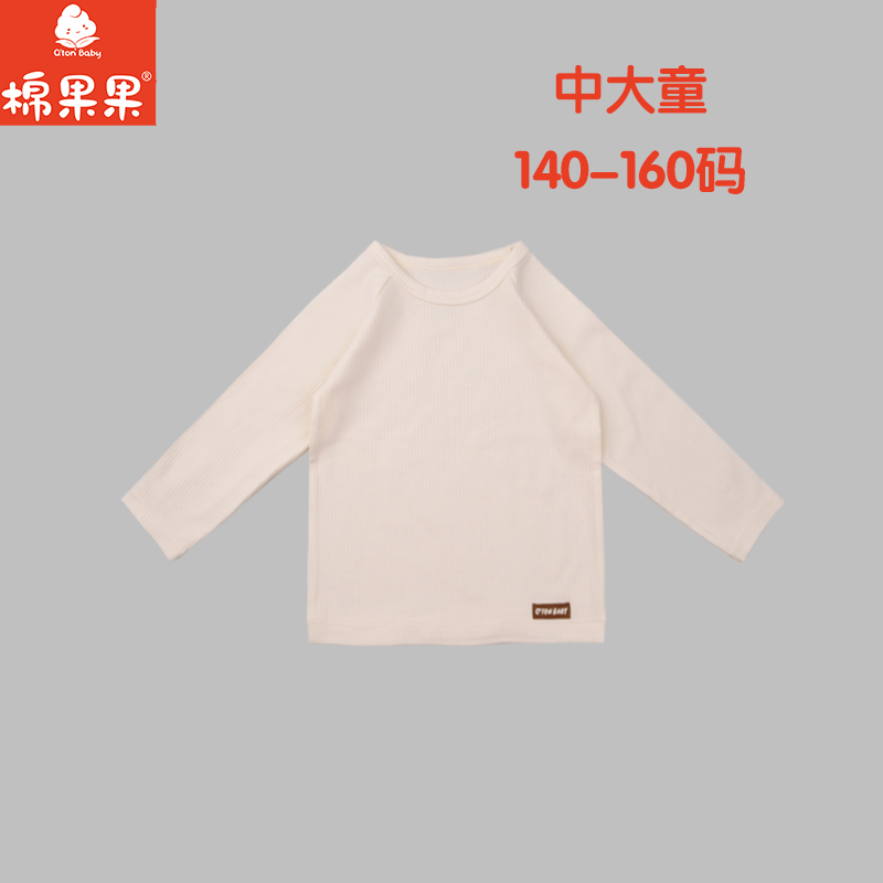 棉果果秋季新品男童女童中大童远山白色大码罗纹圆领套头T恤M301140425483