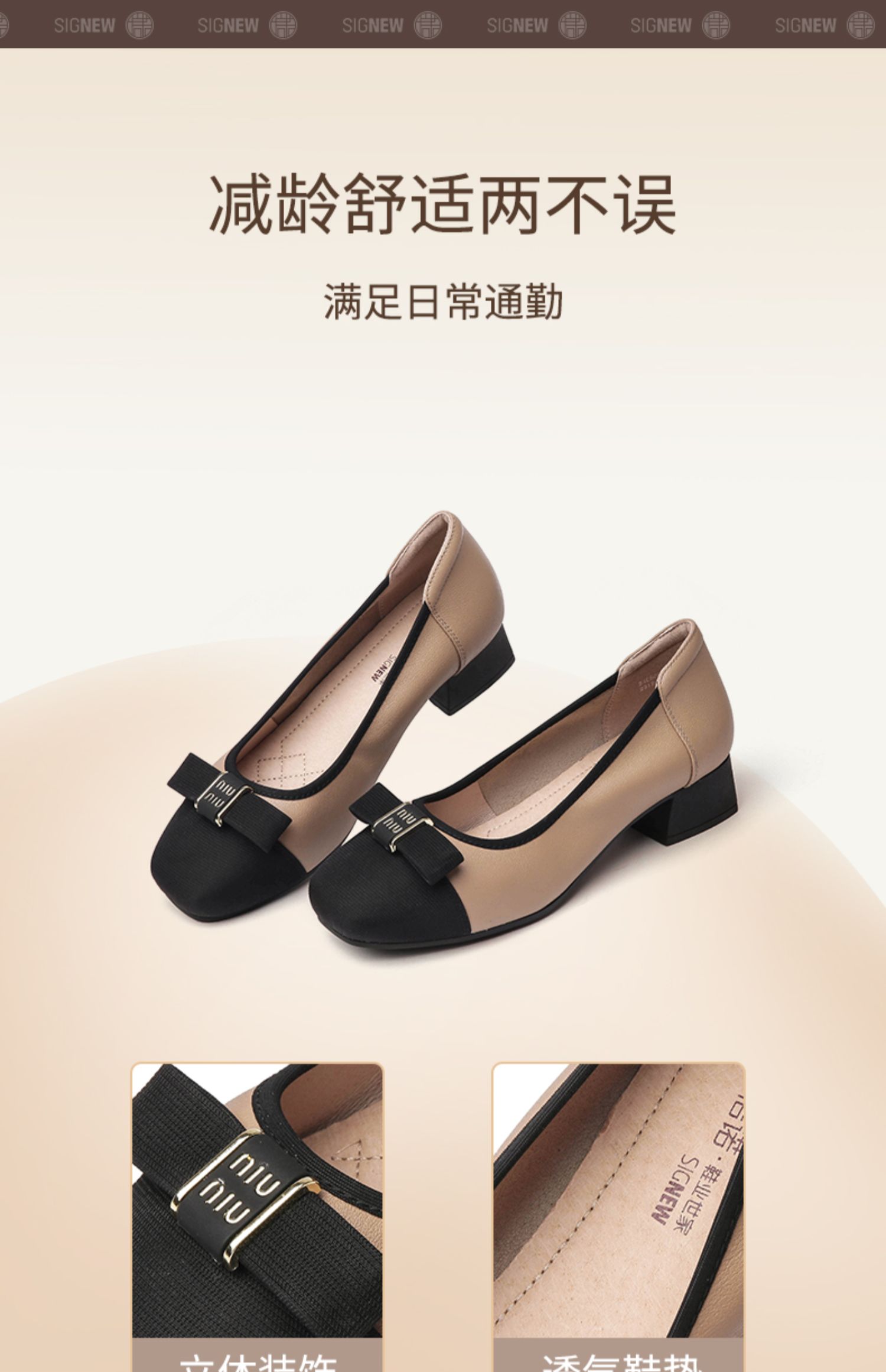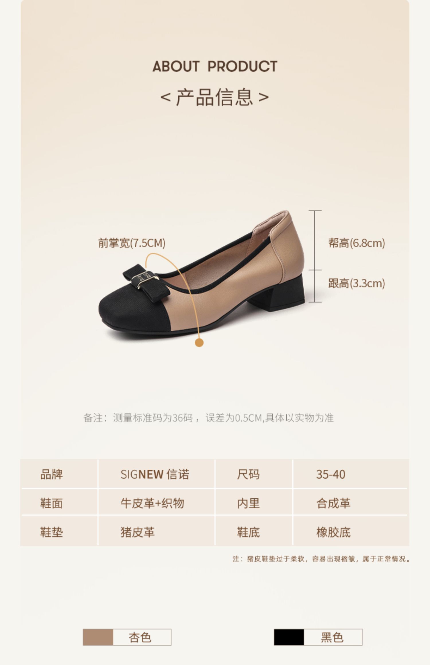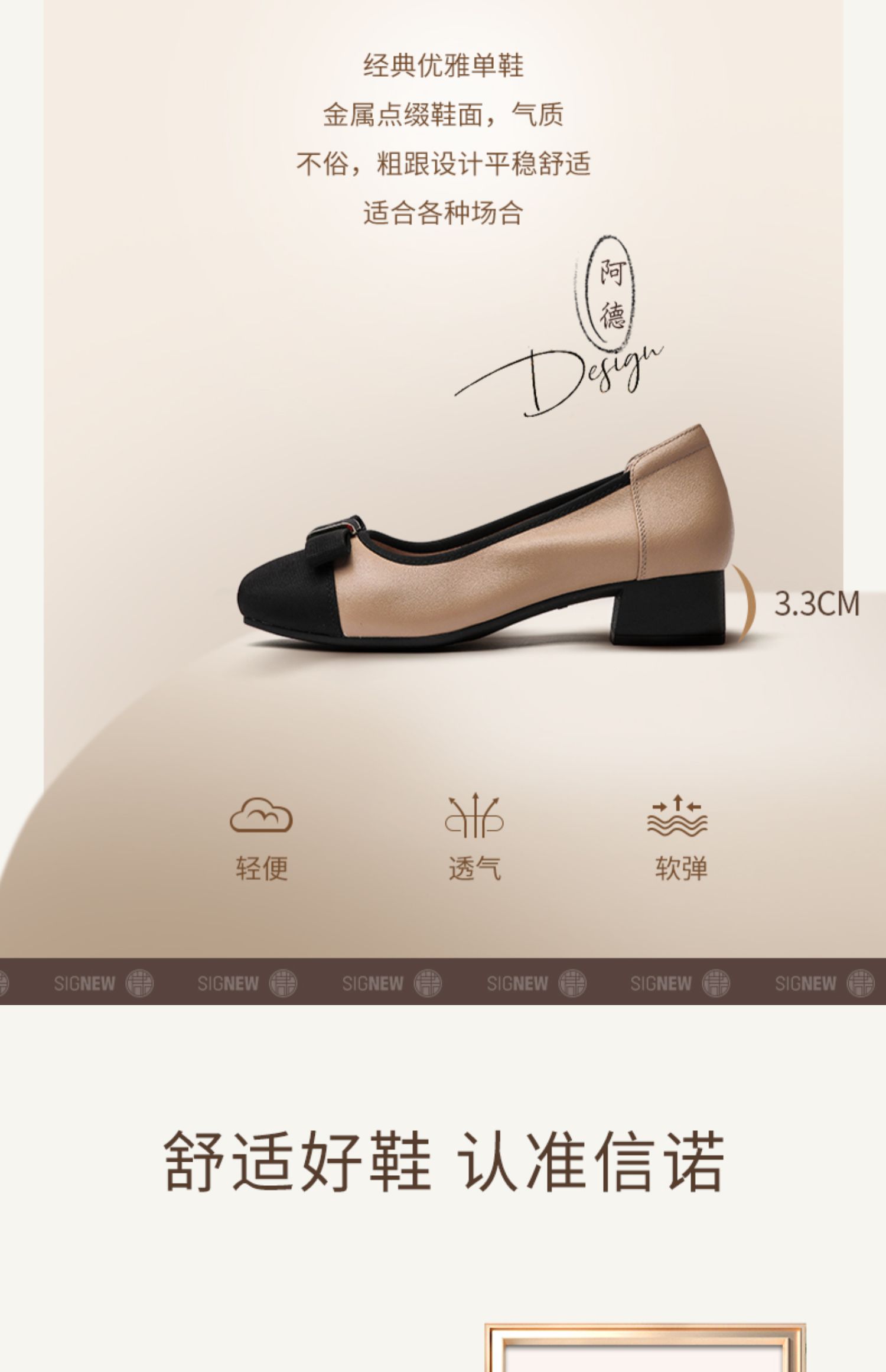信诺真皮单鞋2024新款春季中年女鞋小香风小皮鞋女士软底妈妈鞋子24C5009-7