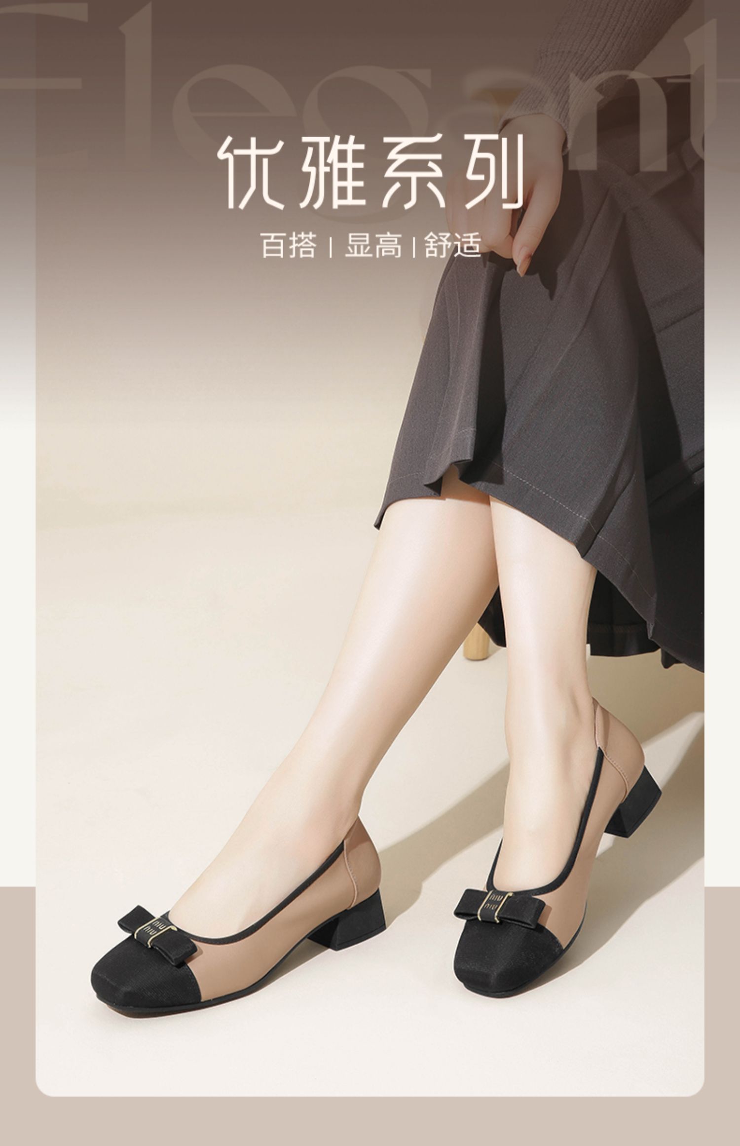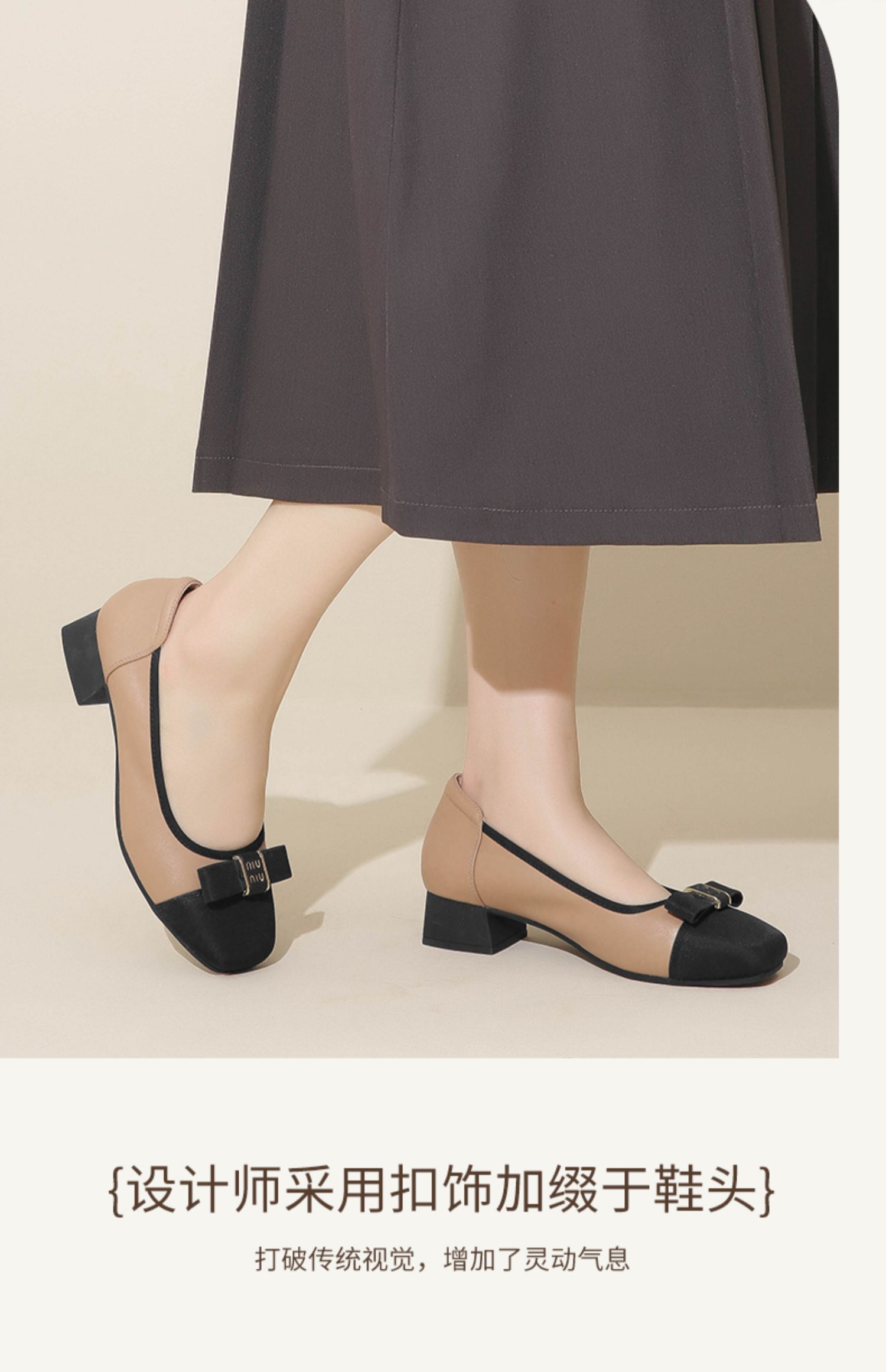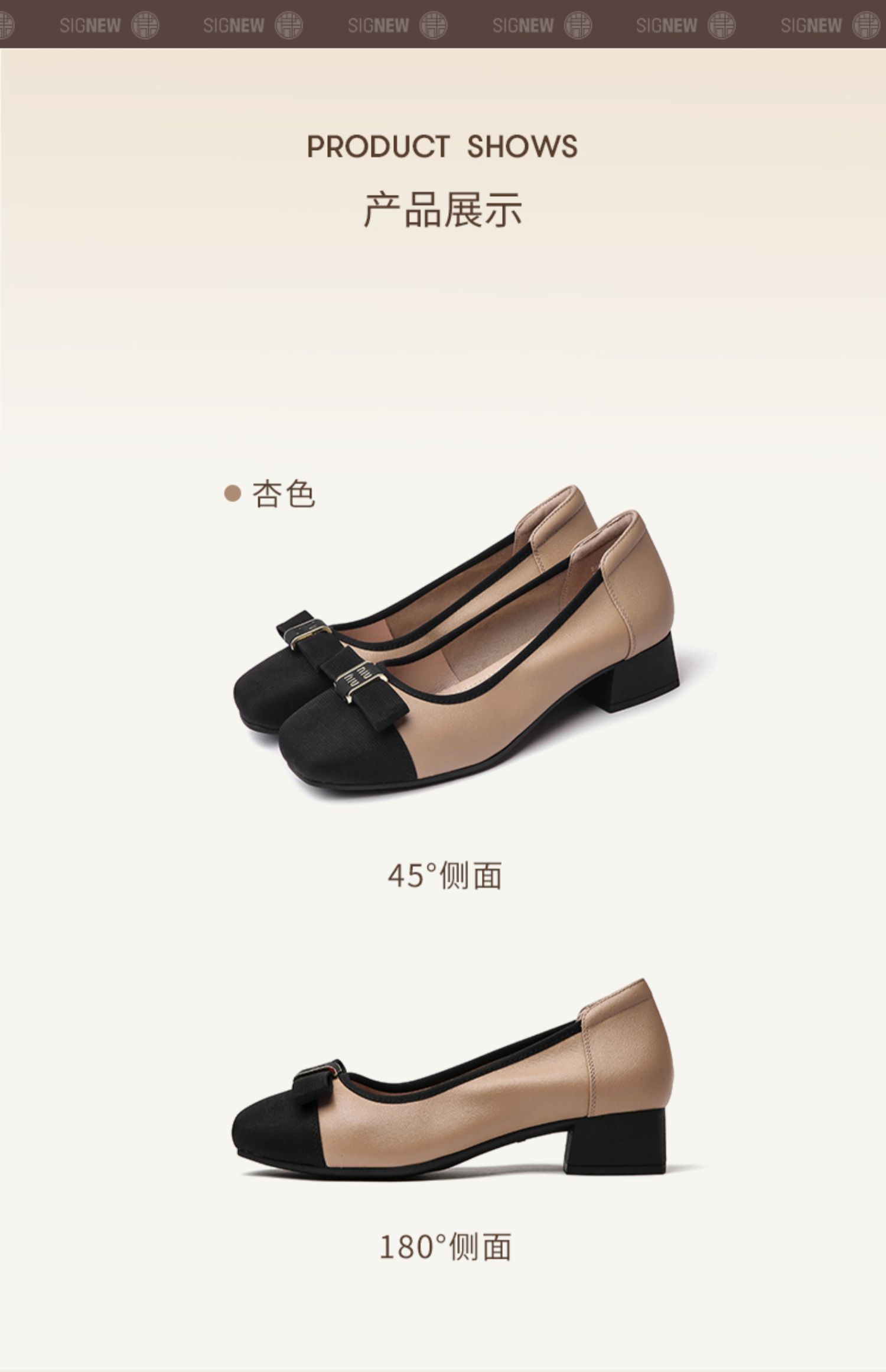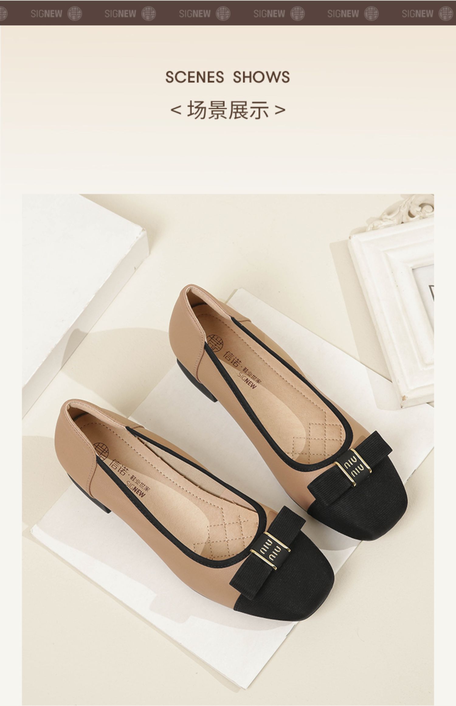 信诺真皮单鞋2024新款春季中年女鞋小香风小皮鞋女士软底妈妈鞋子24C5009-7