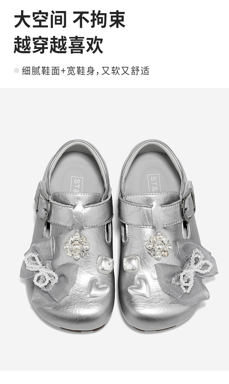 【童鞋】星期六蝴蝶结珍珠装饰女童勃肯鞋SSD3191U33
