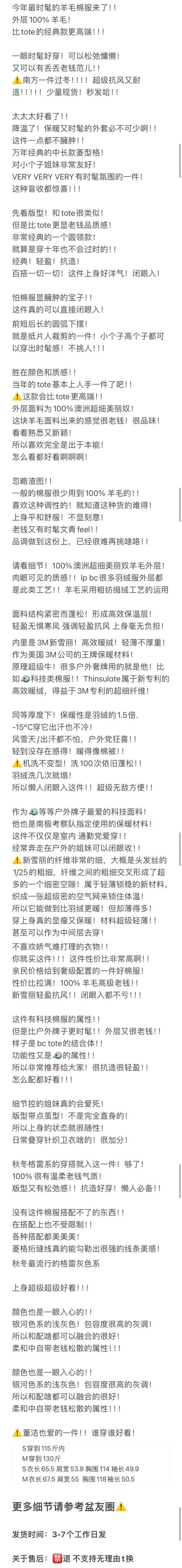 重磅渠道 董洁同款羊毛棉服 羊毛外壳 内里3M新雪丽 媲美羽绒服 抗风保暖轻盈