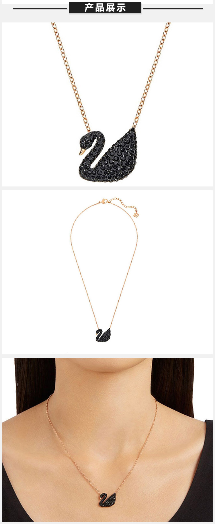 【一般贸易】奥地利施华洛世奇SWAROVSKII CONIC SWAN 黑色天鹅(大号)项链 镀玫瑰金色5204134