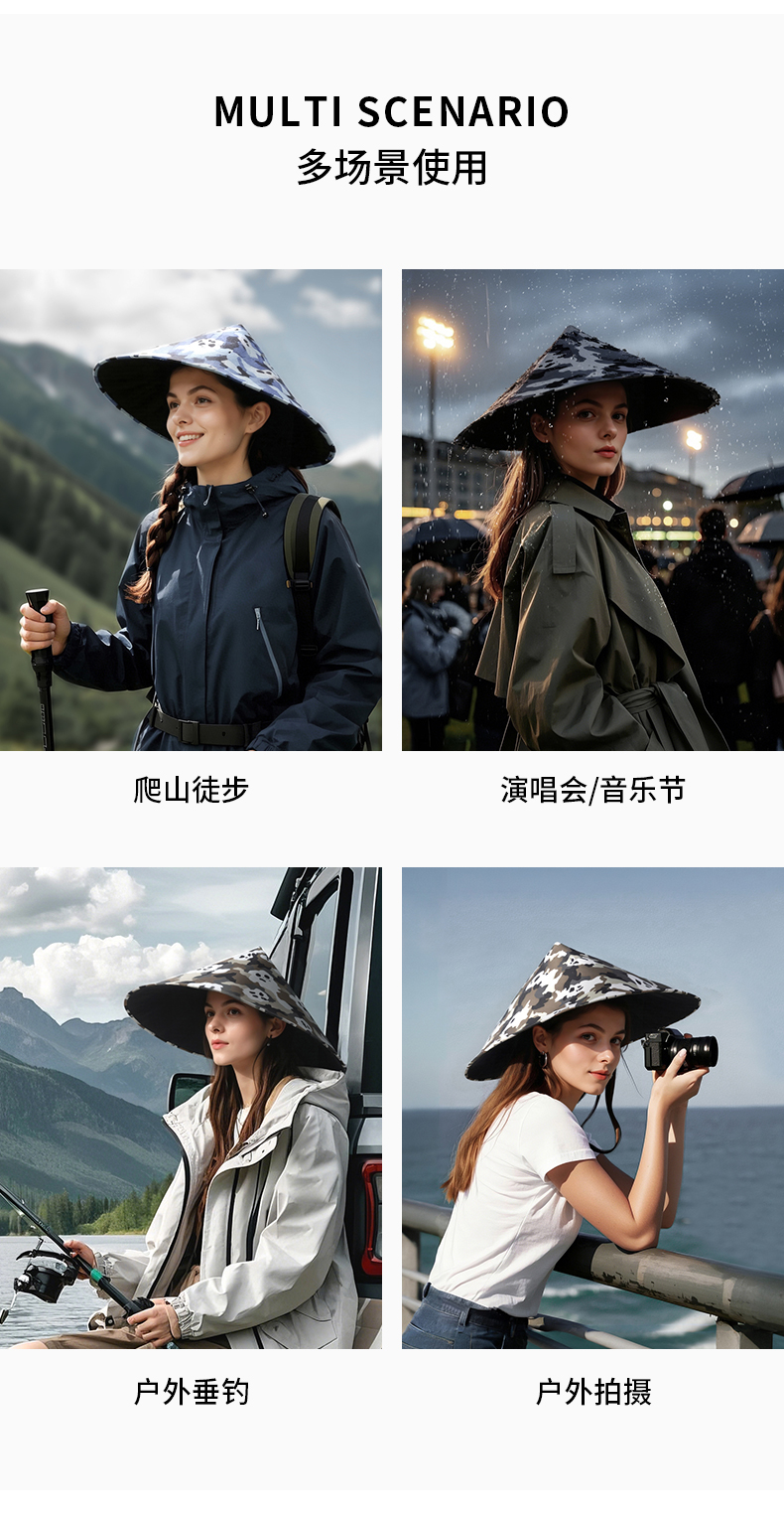 卡蒙晴雨两用黑胶防晒帽帽头戴式可折叠伞帽户外遮阳KM-6168/6127/6126