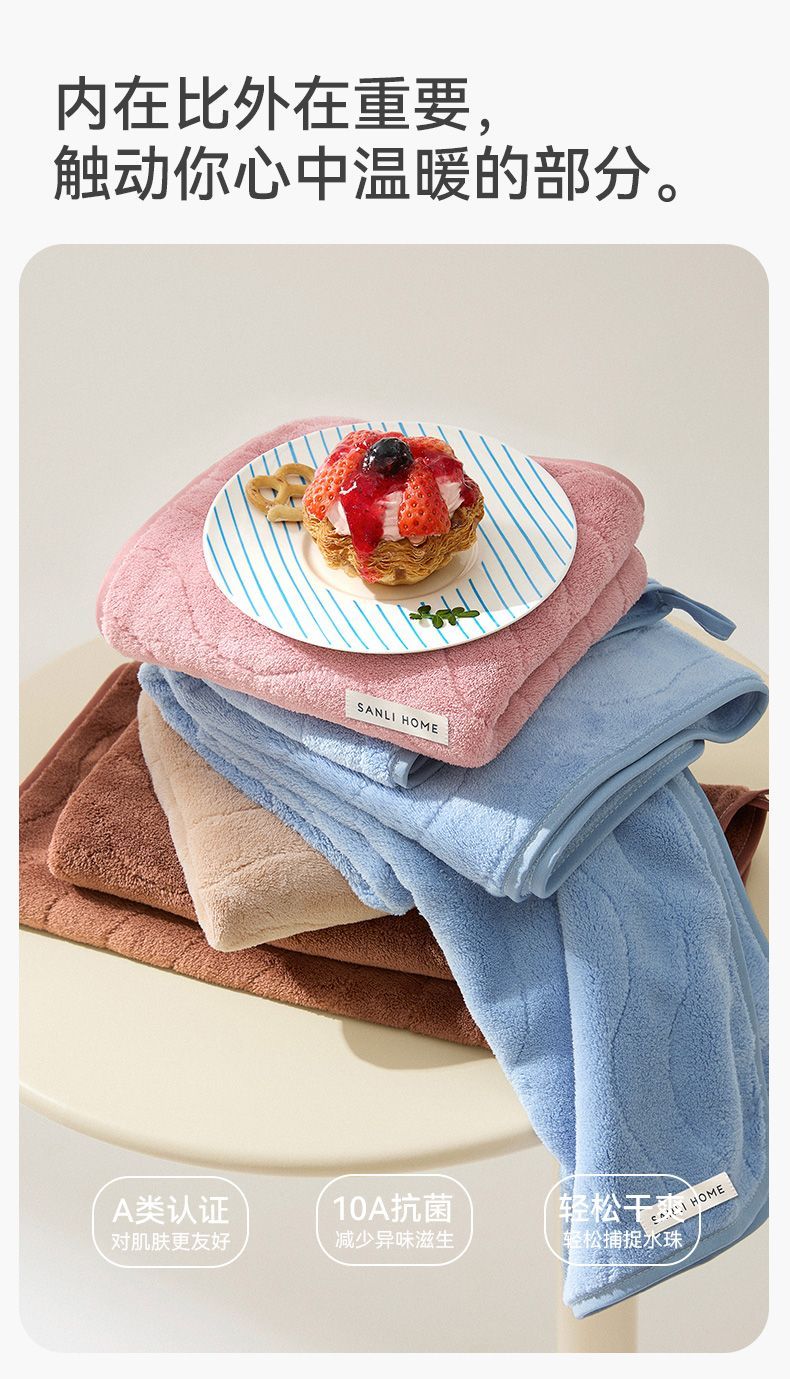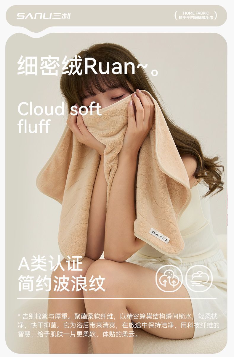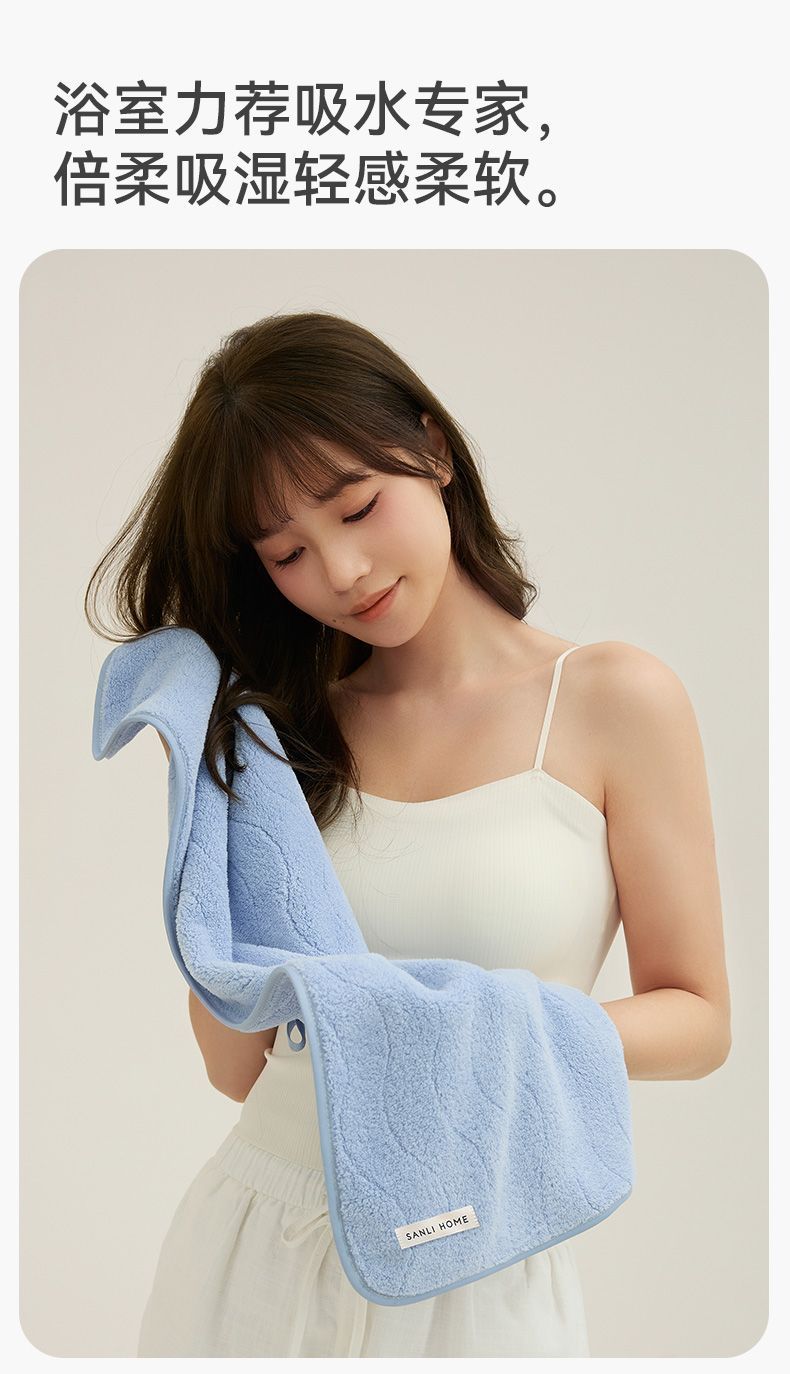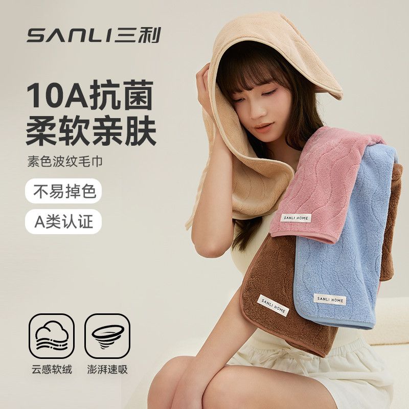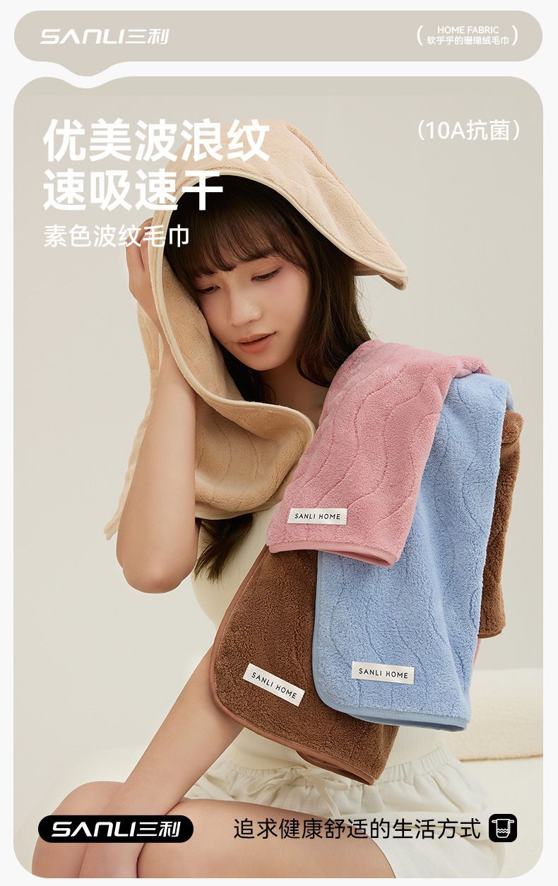 三利10A抗菌毛巾 珊瑚绒波纹毛巾柔软吸水不易掉毛家用洗脸巾3.282