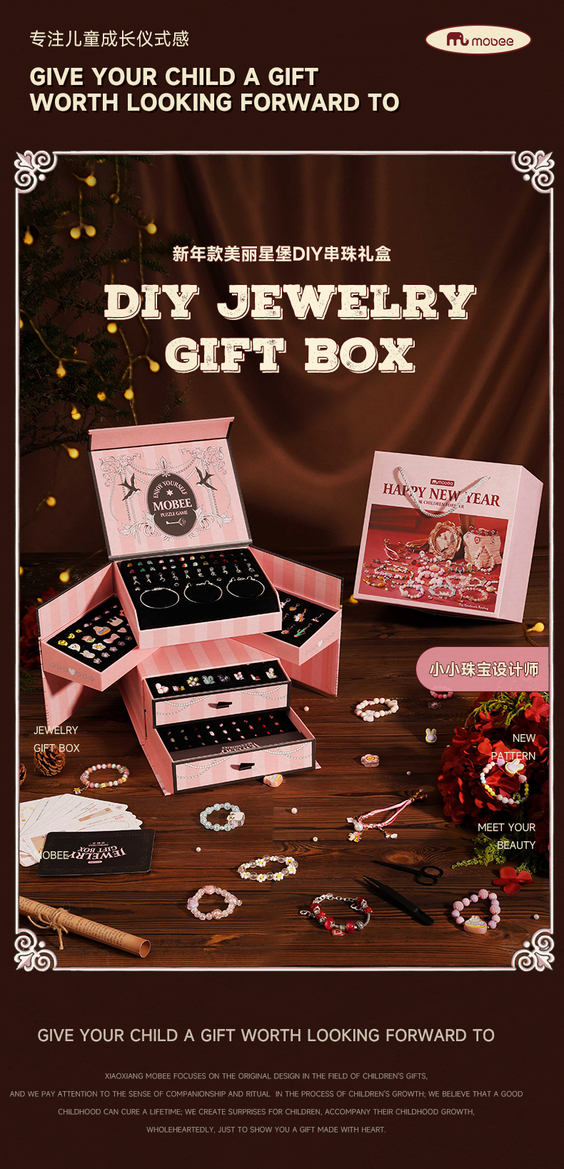 【让孩子变身小小珠宝设计师】mobee手工DIY串珠首饰礼盒 女儿的宝藏美丽星堡 满满的仪式感