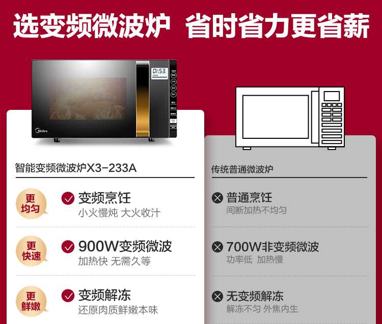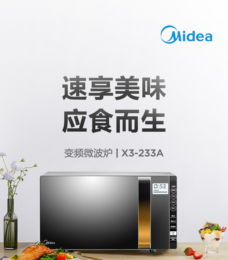 美的(Midea)X3-233A 变频家用微波炉光波烧烤炉 微波炉电烤箱一体机 智能湿度感应 900W微烤一体23升