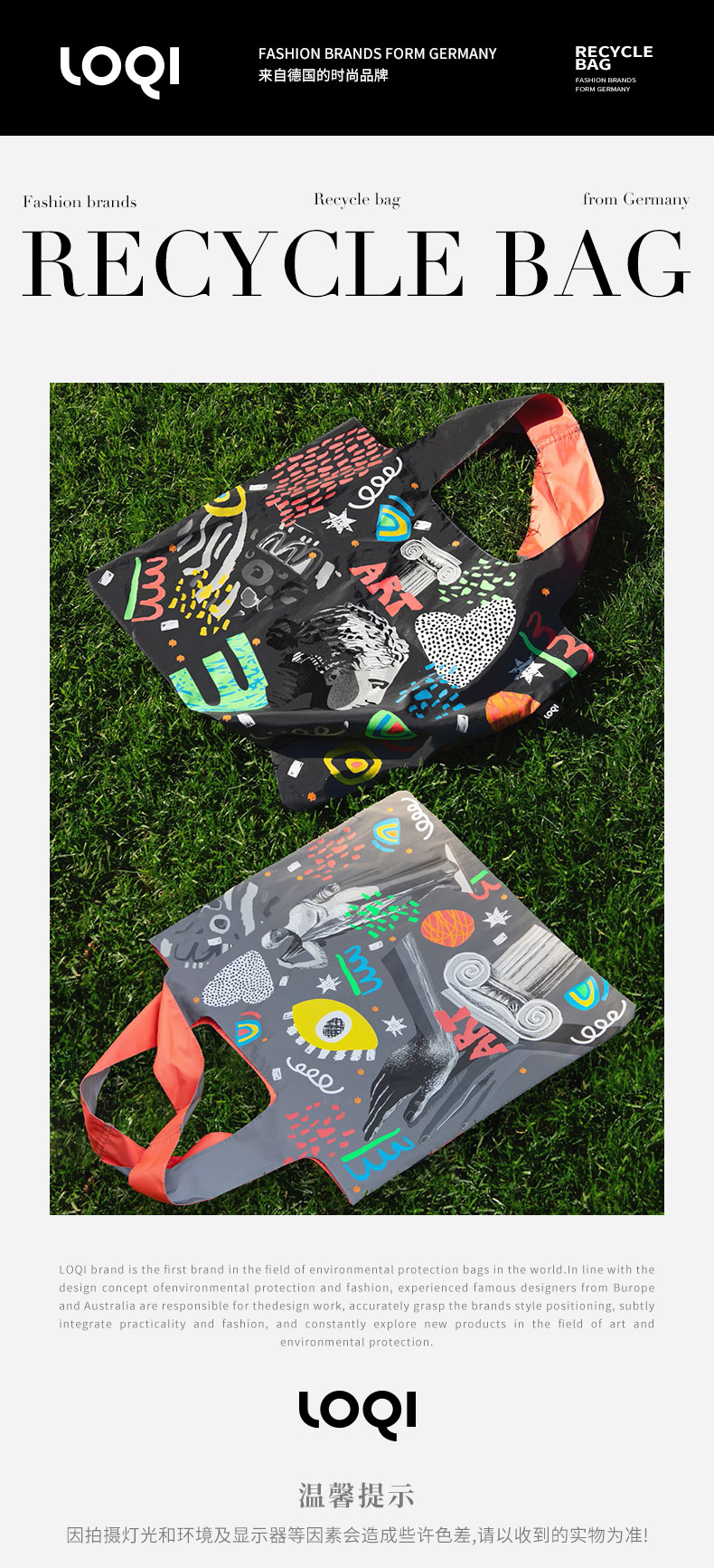 德国LOQI 新品 博物馆系列 反光涂层 时尚艺术环保万用袋 折叠大容量单肩手提购物袋承重40斤防泼水 胡安·米罗 威廉·莫里斯