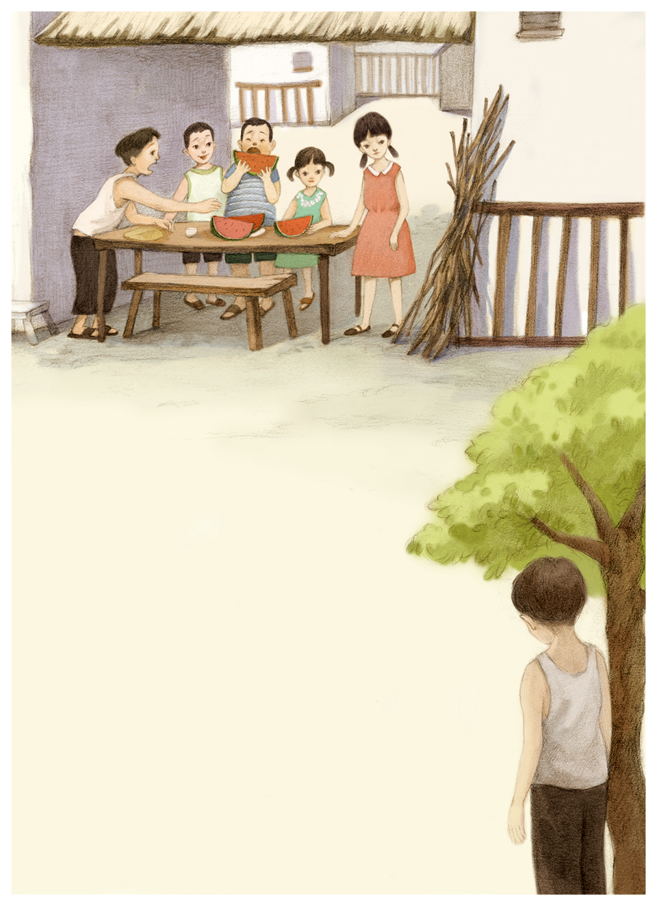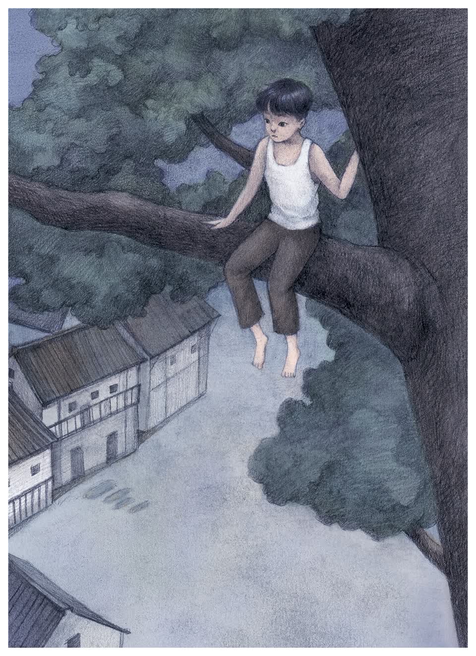 当油麻地的孩子们在穿堂风中自由自在地来来去去时,乌童知道,远处的大树背后,或是那座废弃的房屋拐角处,藏着一双眼睛。她有时会玩着玩着,心思悄悄走开了,便暂时忘了草棚下有那么多孩子,用眼睛看向远处,并慢慢移动目光,寻找着那双眼睛。