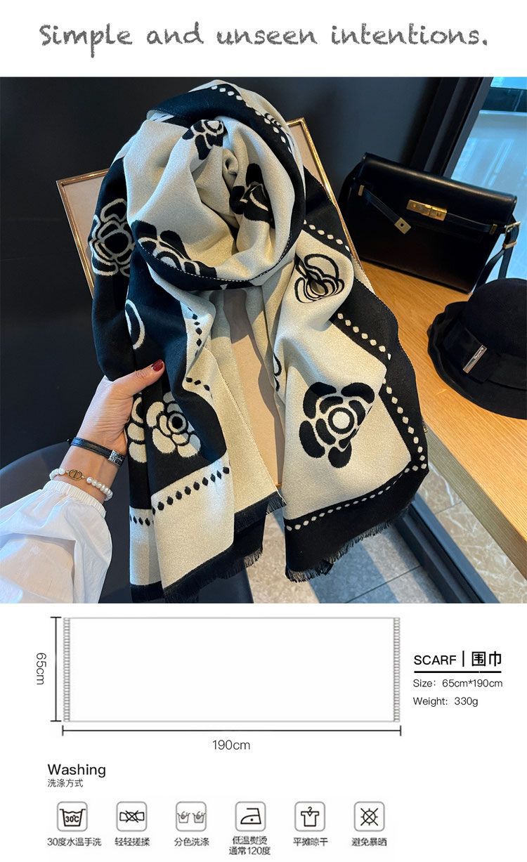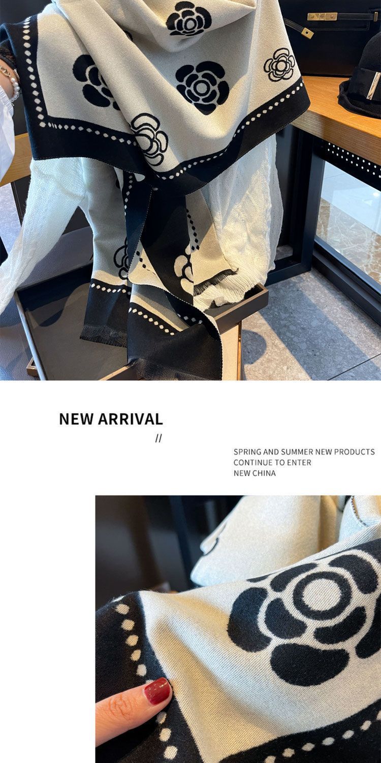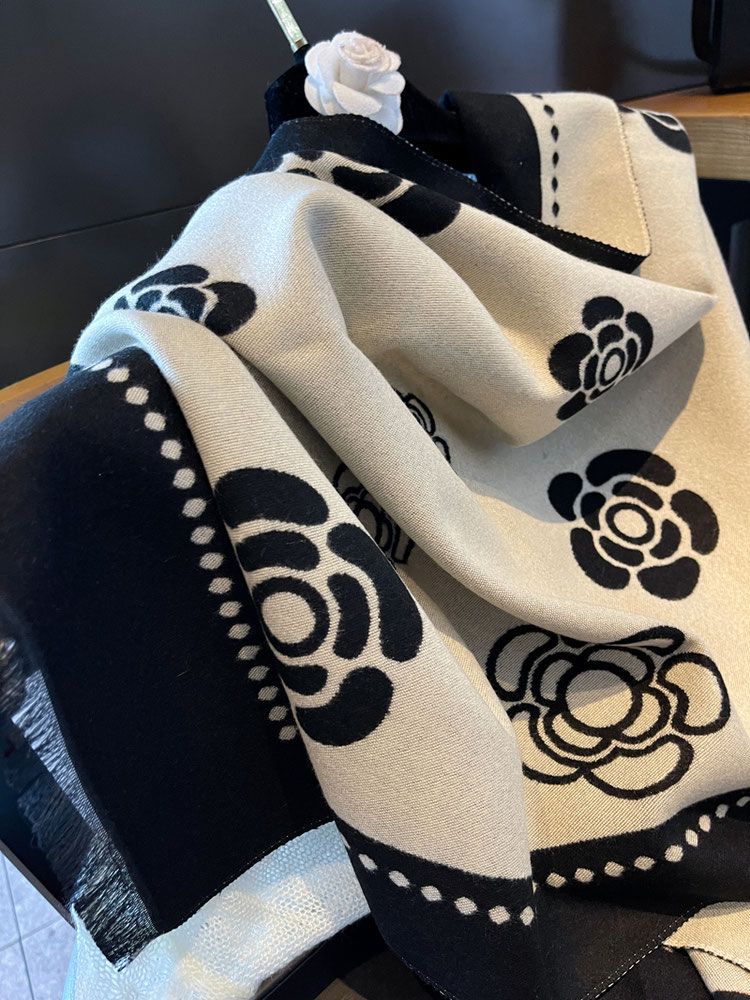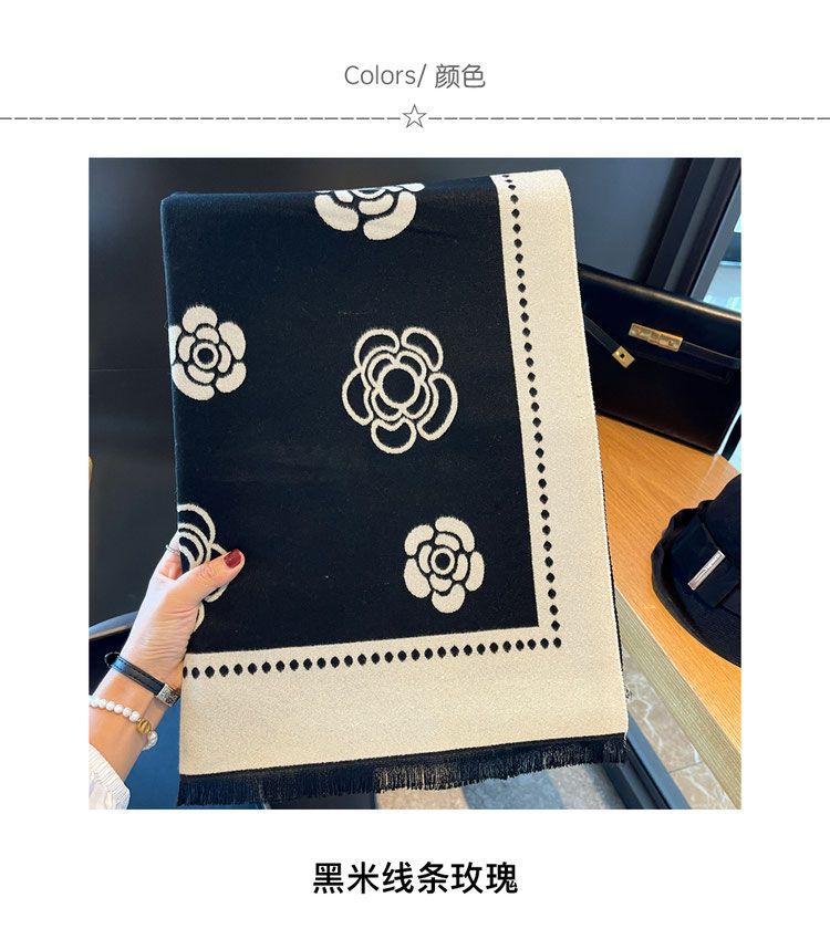 秋冬山茶花小香风围巾 简约美学保暖柔软 百搭花朵加厚保暖披肩围脖