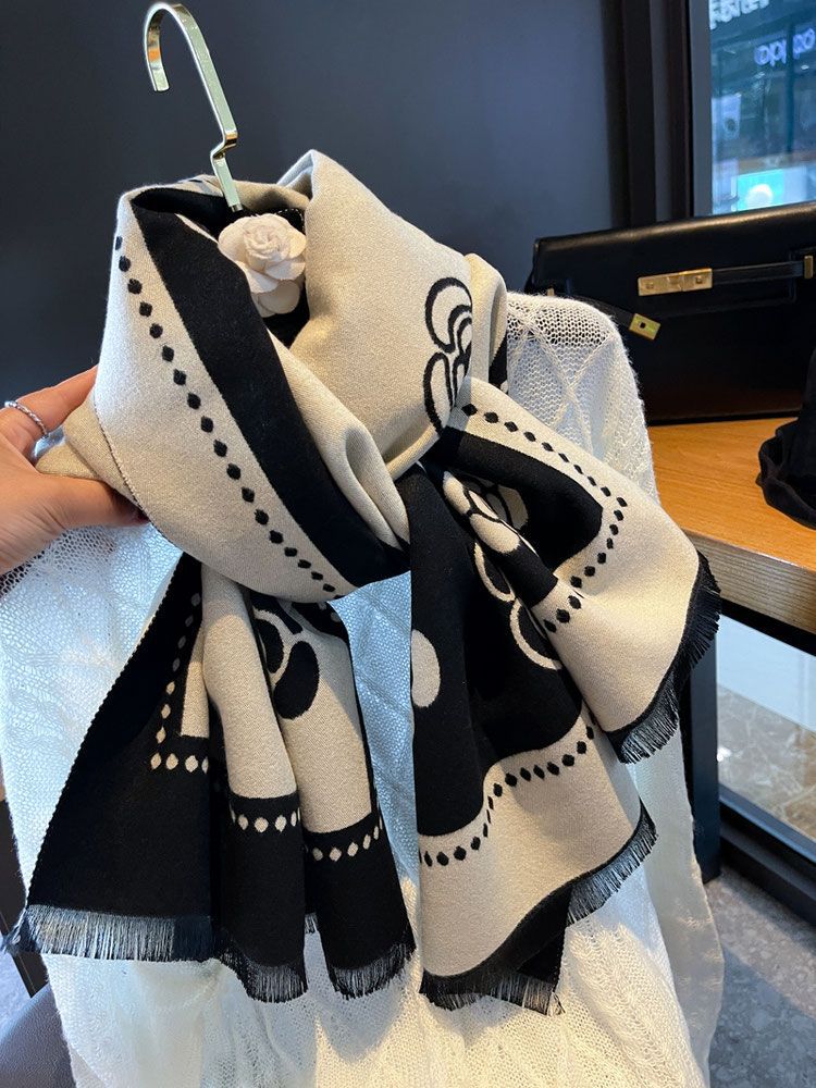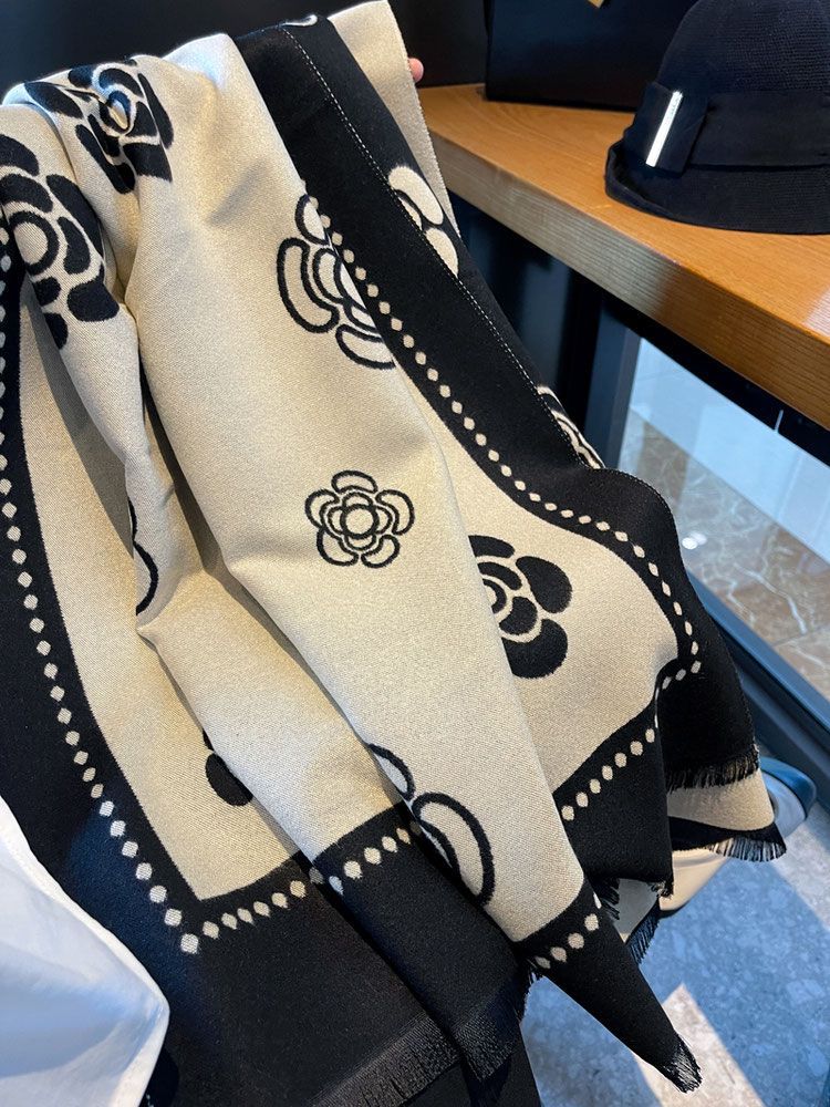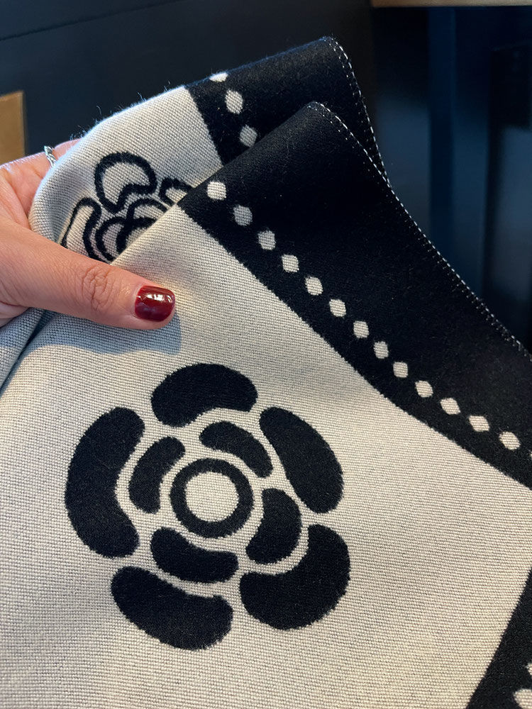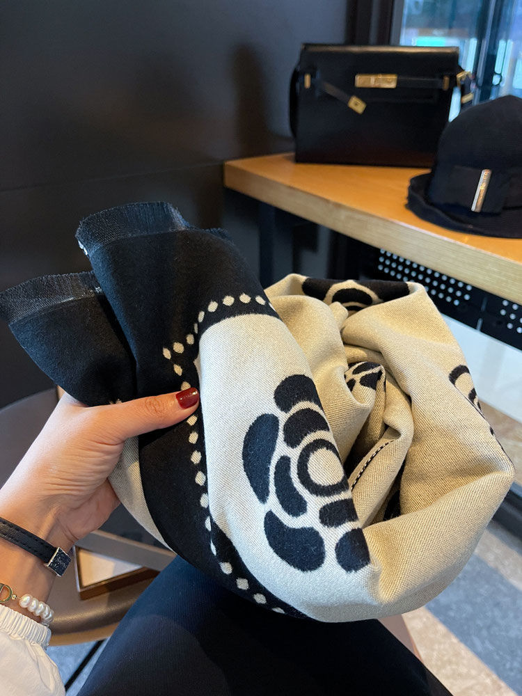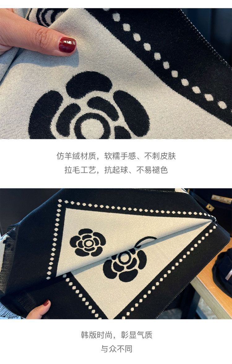 秋冬山茶花小香风围巾 简约美学保暖柔软 百搭花朵加厚保暖披肩围脖