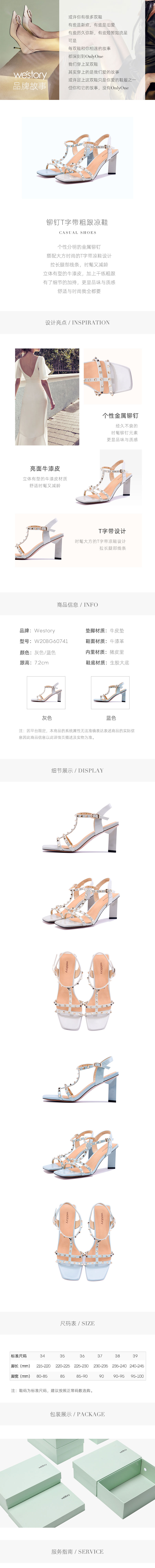 westory年夏新款铆钉流行仙女风高跟ins潮凉鞋女W20BG60741