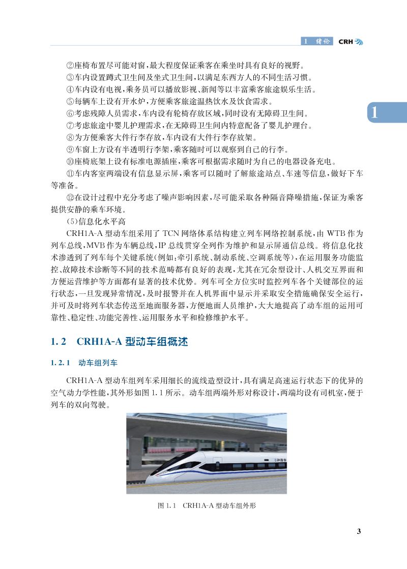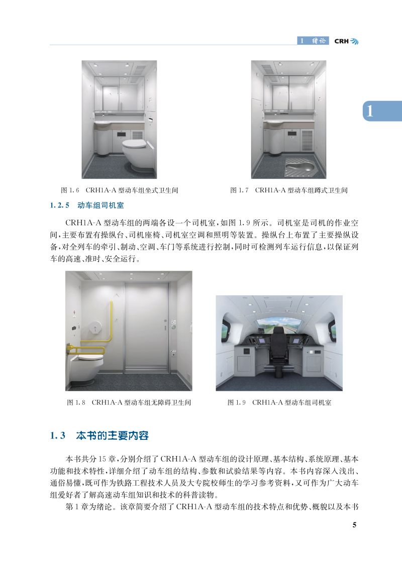 本书系统地开展了高铁铁路列车理论、计算、仿真和试验研究,分十五个章节对CRH1A-A型动车组总体和各个系统进行了全面详实的介绍,包括了总体技术、车体结构、车内设施、转向架、前端及司机室、牵引系统、辅助供电系统、网络控制系统、制动系统、旅客信息和娱乐系统、车内环境控制系统、车端连接、给排水及卫生系统和列车运行控制系统车载设备等主要系统的技术特点、功能原理和设备构造等方面的内容。本书内容深入浅出、图文并茂、通俗易懂。