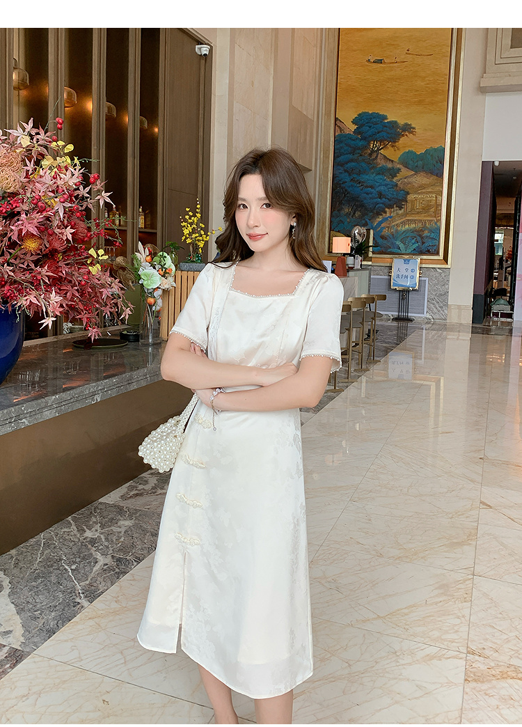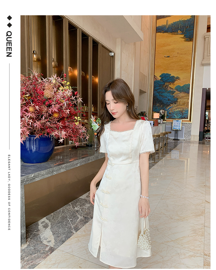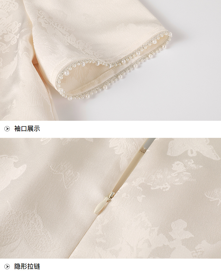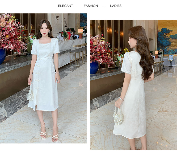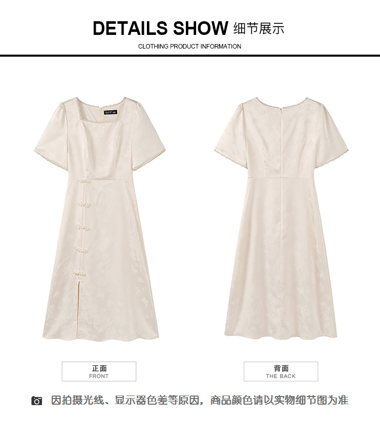 【清仓超15天不保价】奢姿大码女装2025夏季时尚方领旗袍连衣裙胖妹妹提花减龄开衩裙子9952890433【1】