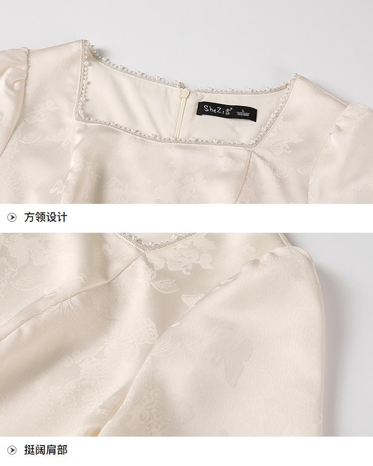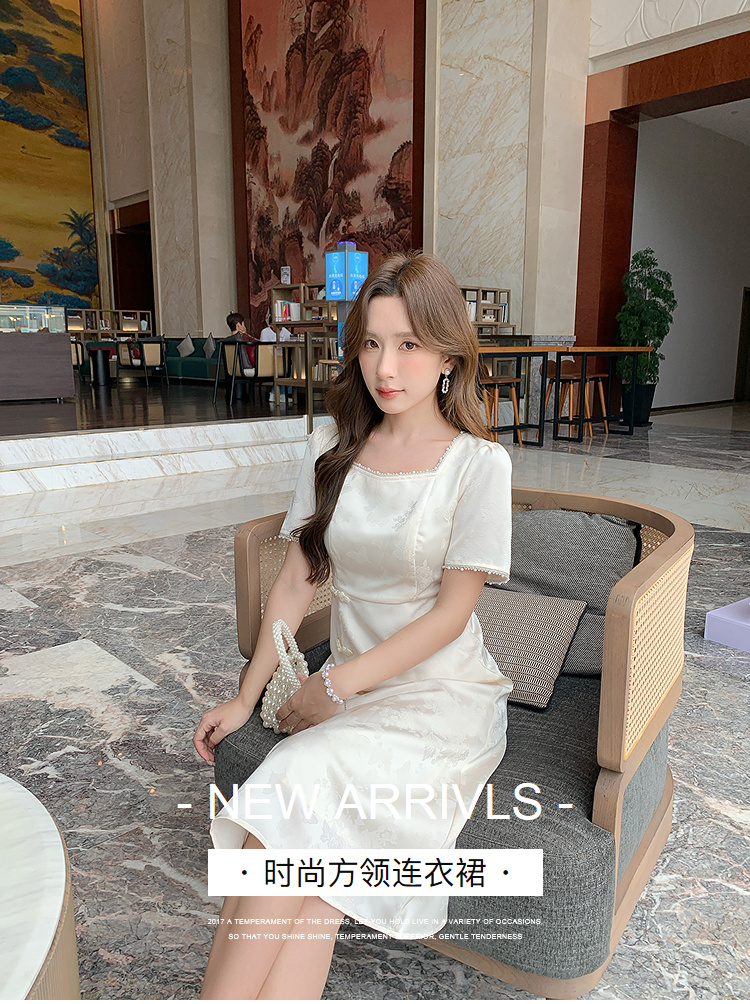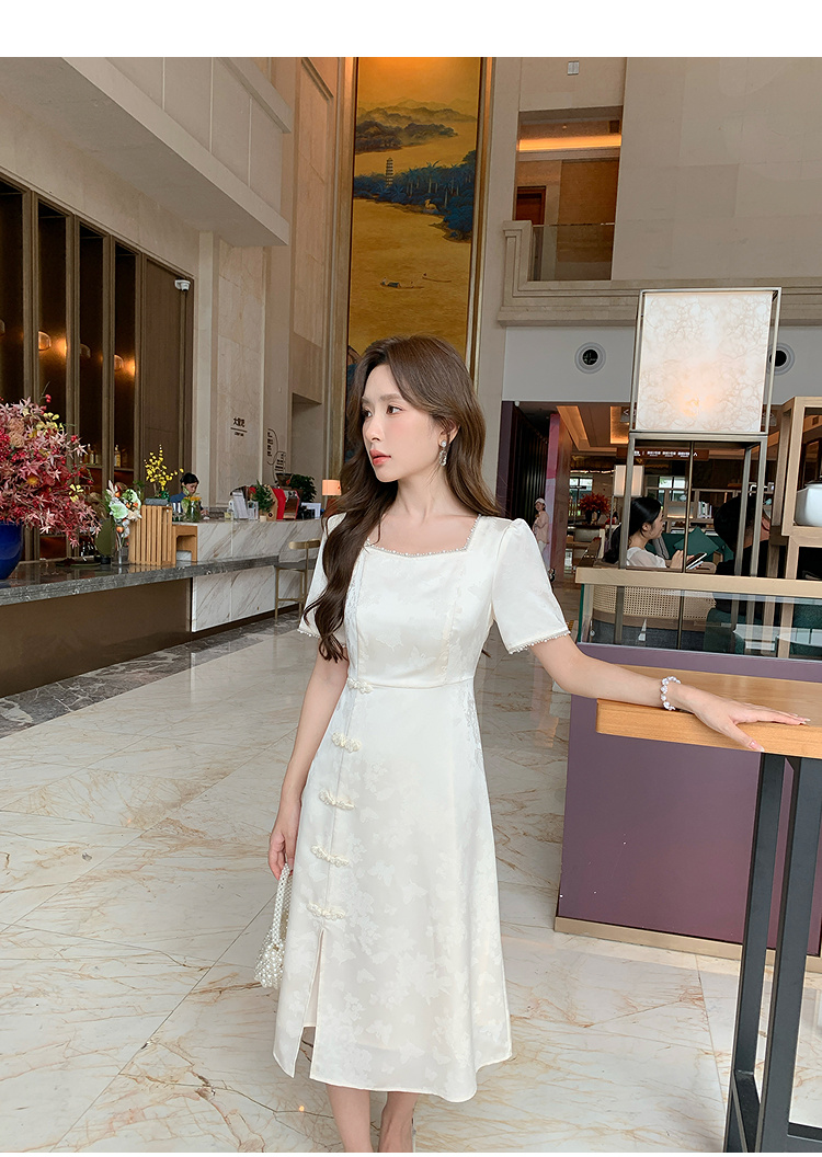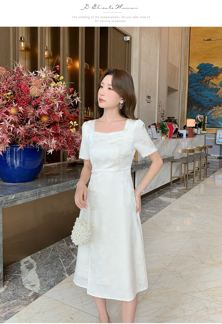 【清仓超15天不保价】奢姿大码女装2025夏季时尚方领旗袍连衣裙胖妹妹提花减龄开衩裙子9952890433【1】