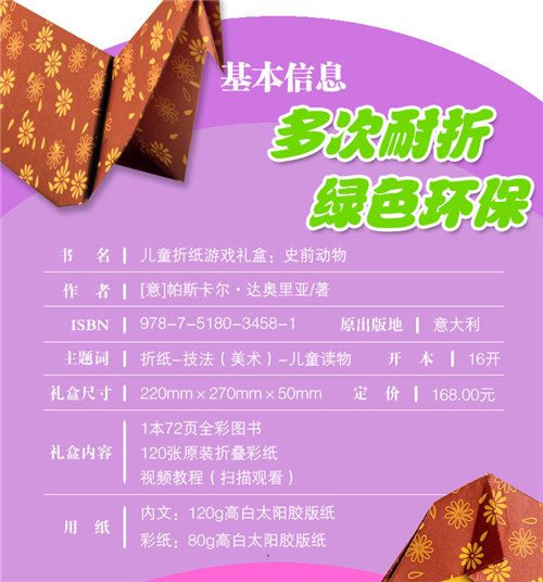折纸手工大全书 中小学生 儿童折纸游戏礼盒:史前动物 动物折纸书立体书儿童3d立体书手工的书亲子游戏益智儿童智力开发的书