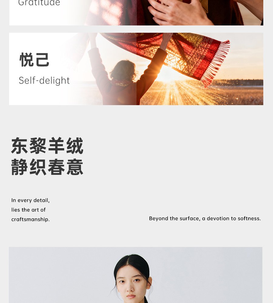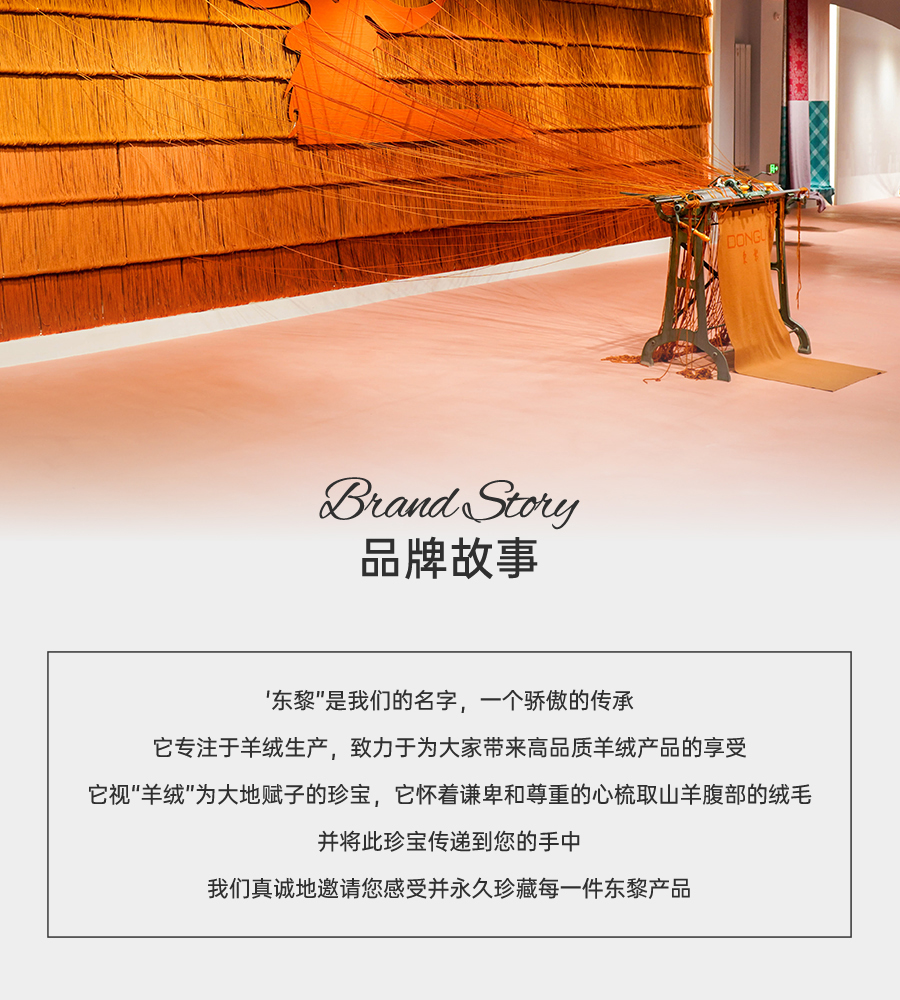 东黎羊绒是赤峰东荣集团自主品牌,自有牧场/羊绒制品全产业链优势,实现了羊绒从“牧场”到“商场”的华丽转变。