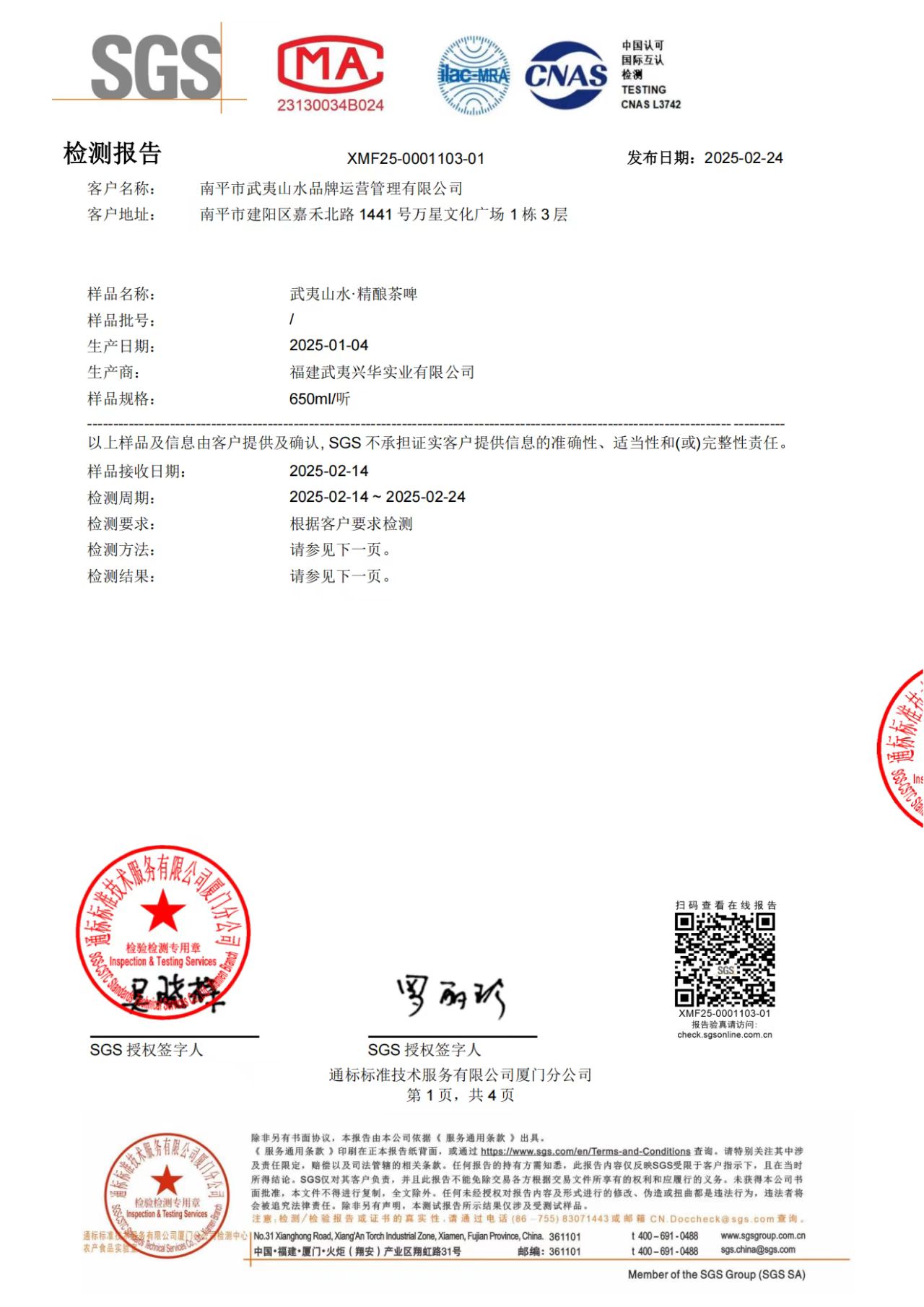 0599【国企严选,山海食材】武夷山水精酿茶啤650g*6瓶/箱