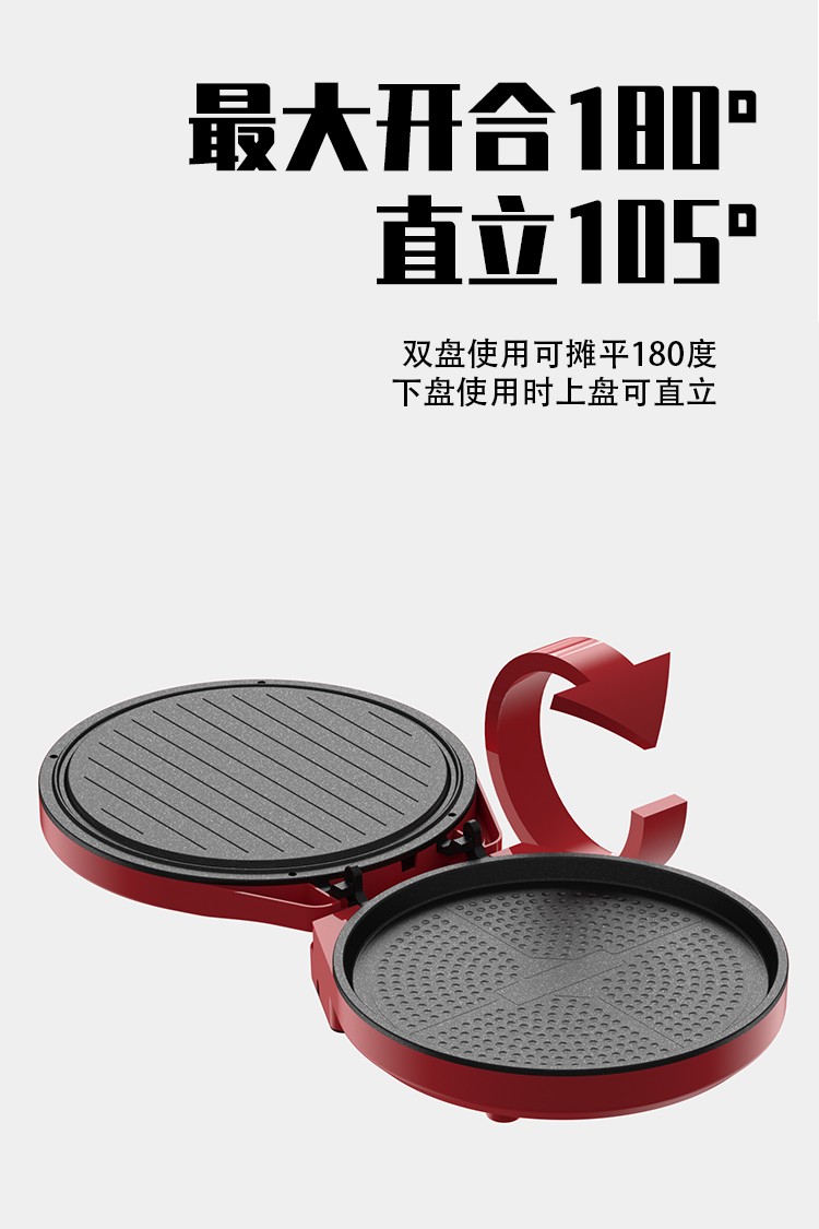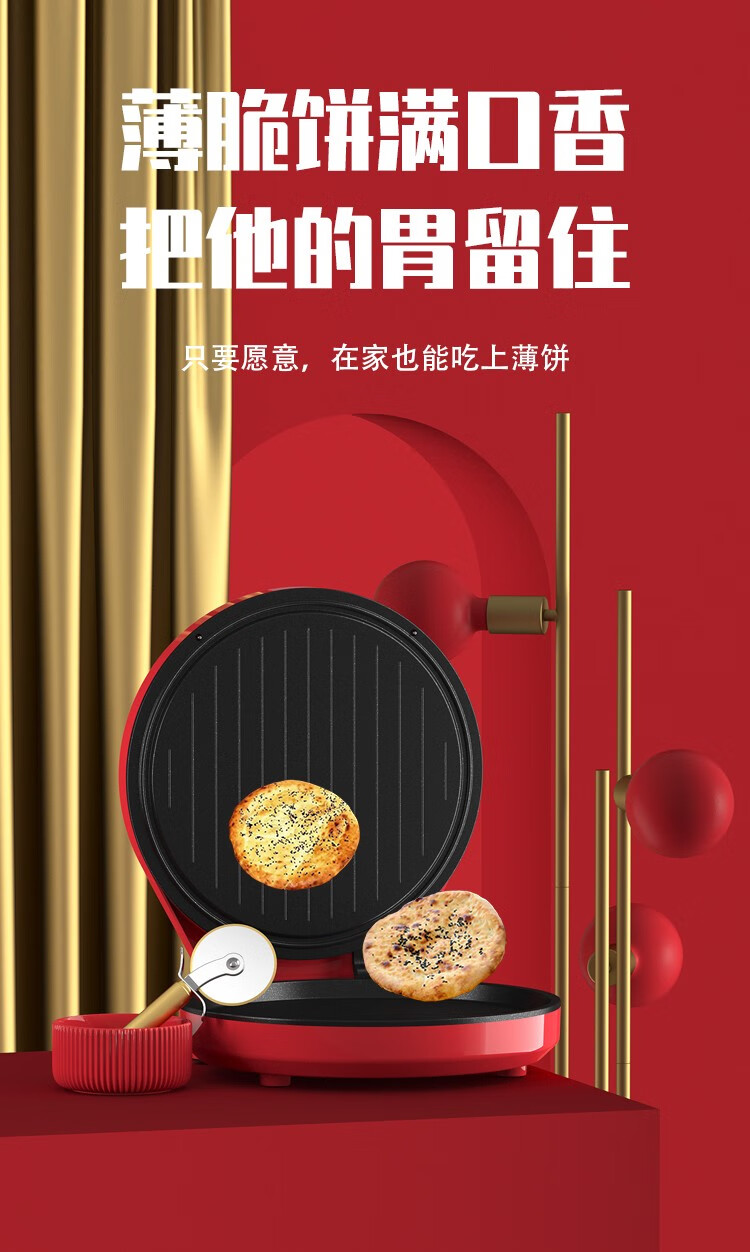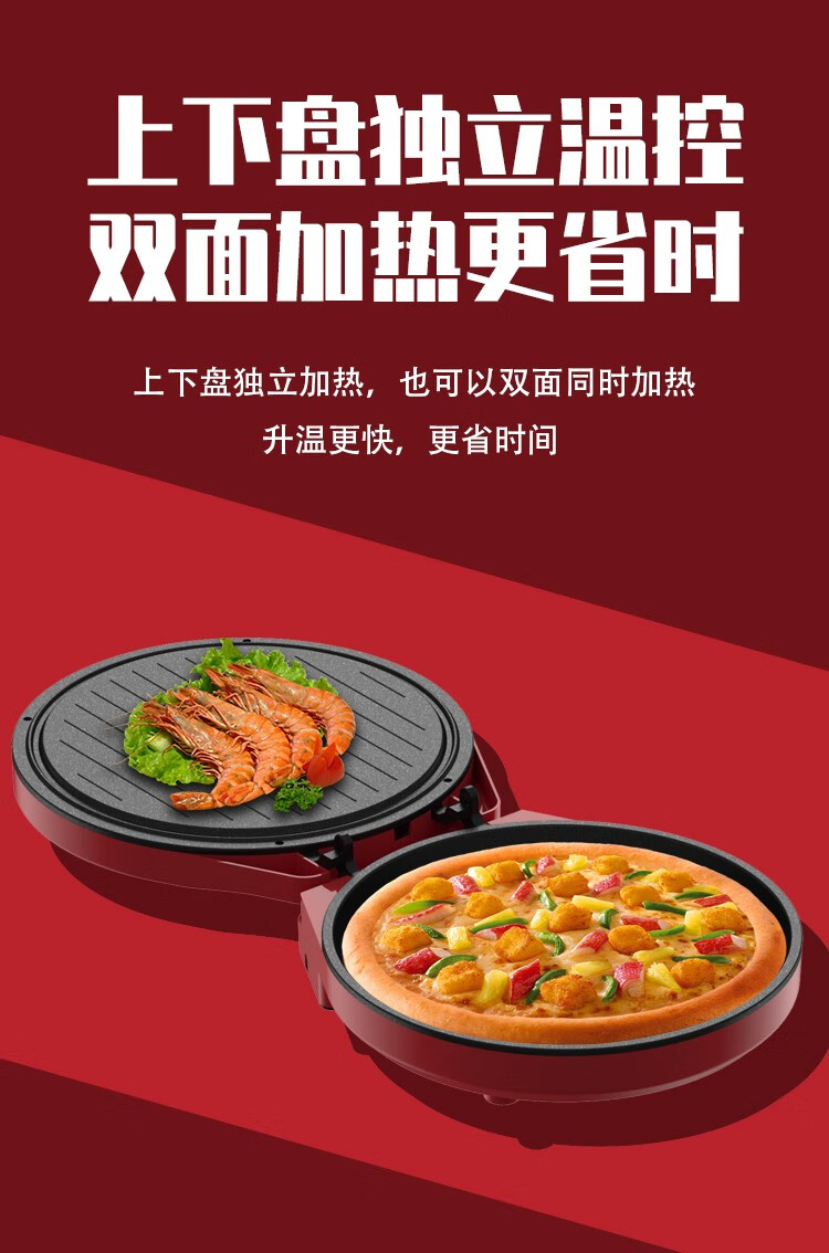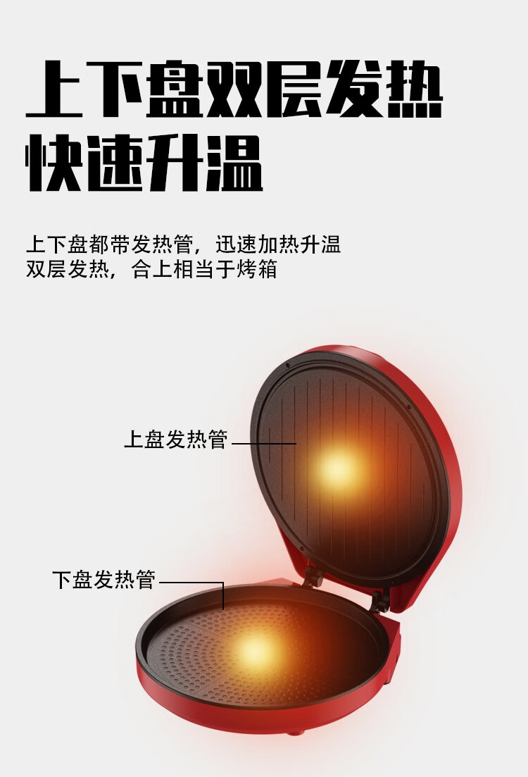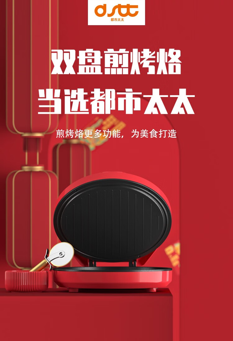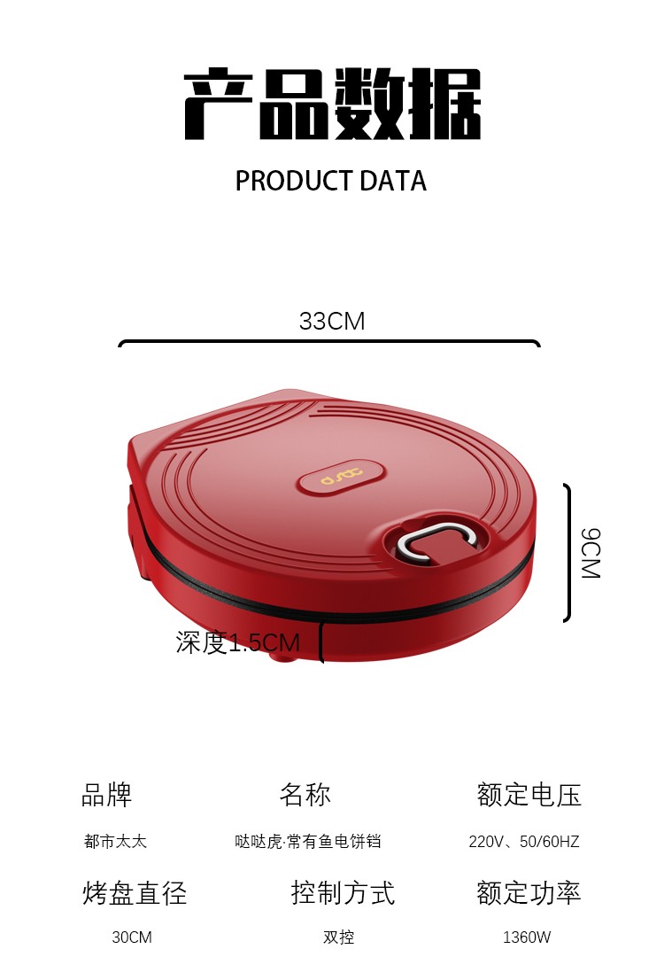 都市太太哒哒虎常有鱼电饼铛家用双面加热烙煎饼锅自动断电加大电饼档锅_中国红