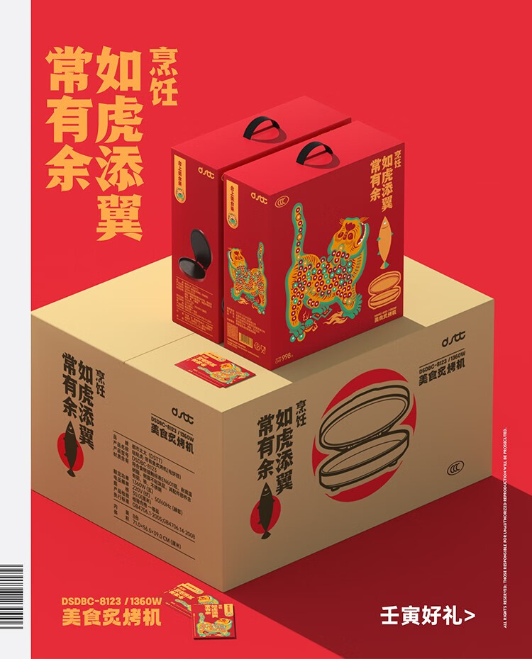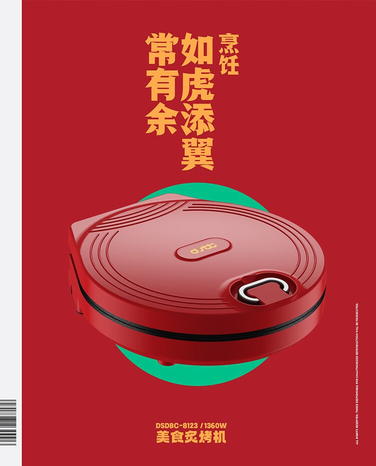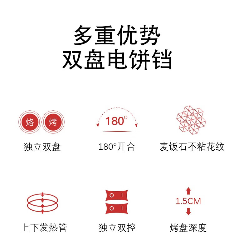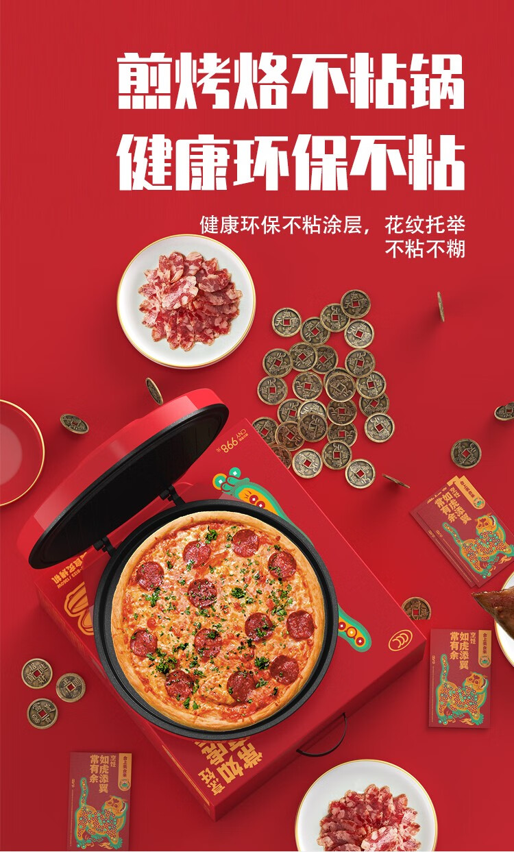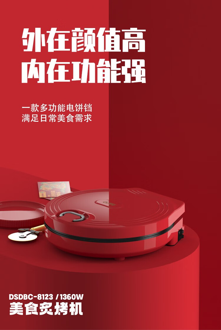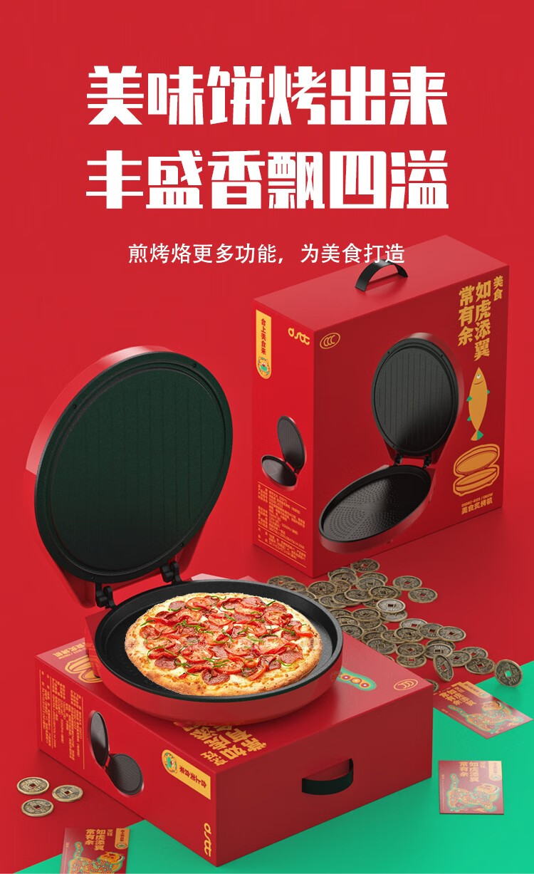 都市太太哒哒虎常有鱼电饼铛家用双面加热烙煎饼锅自动断电加大电饼档锅_中国红