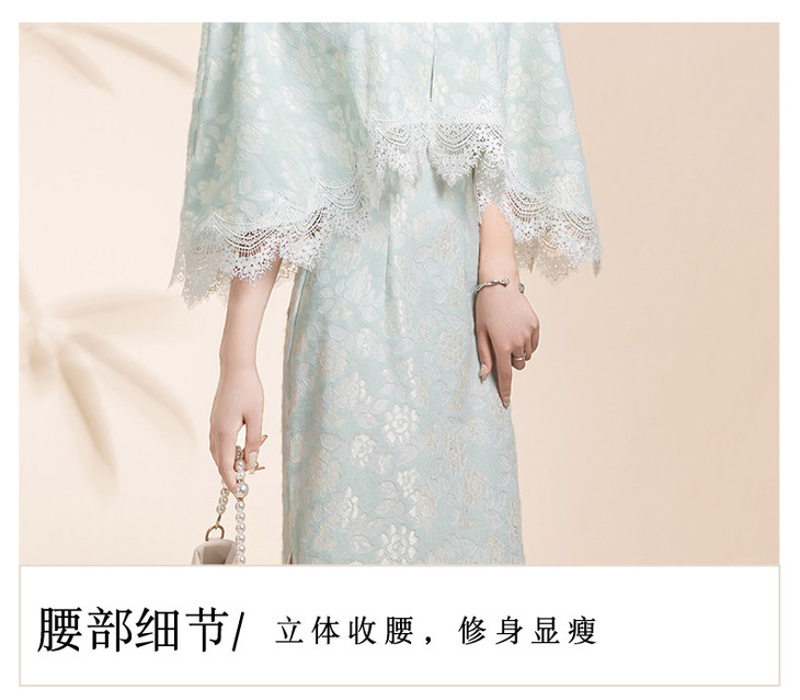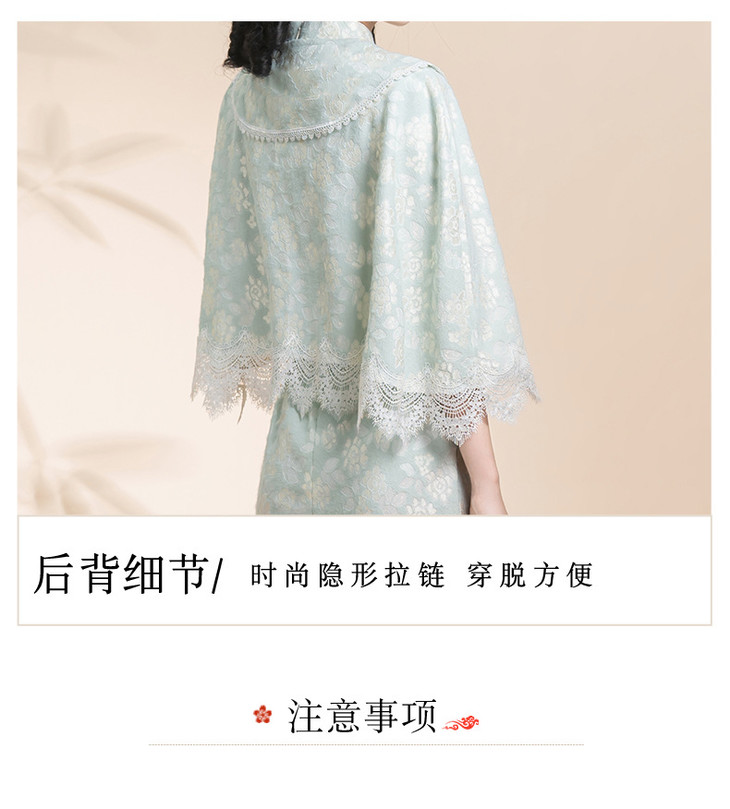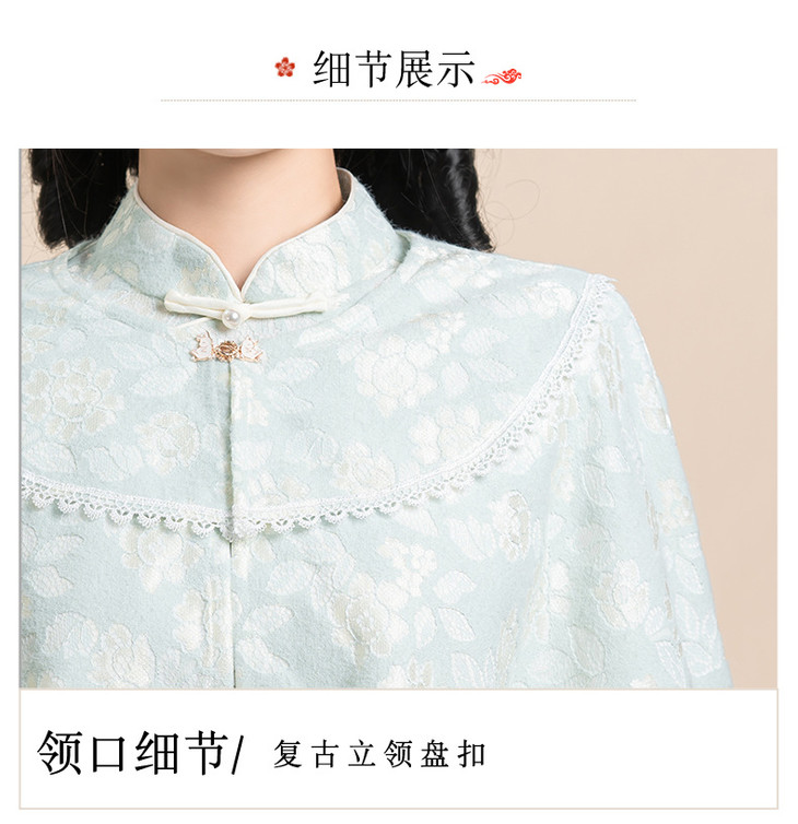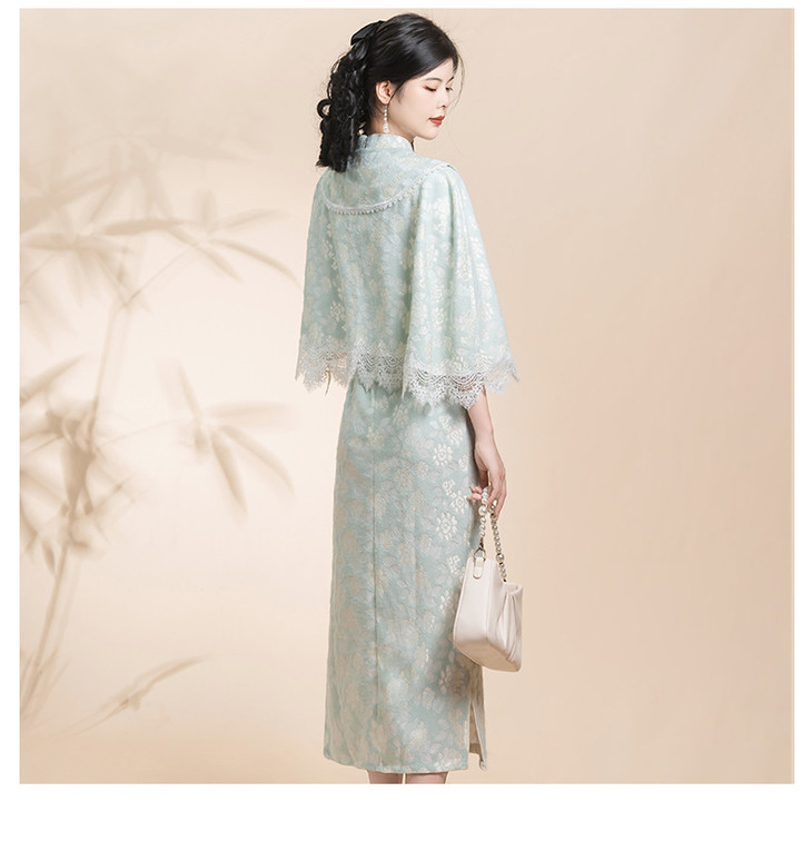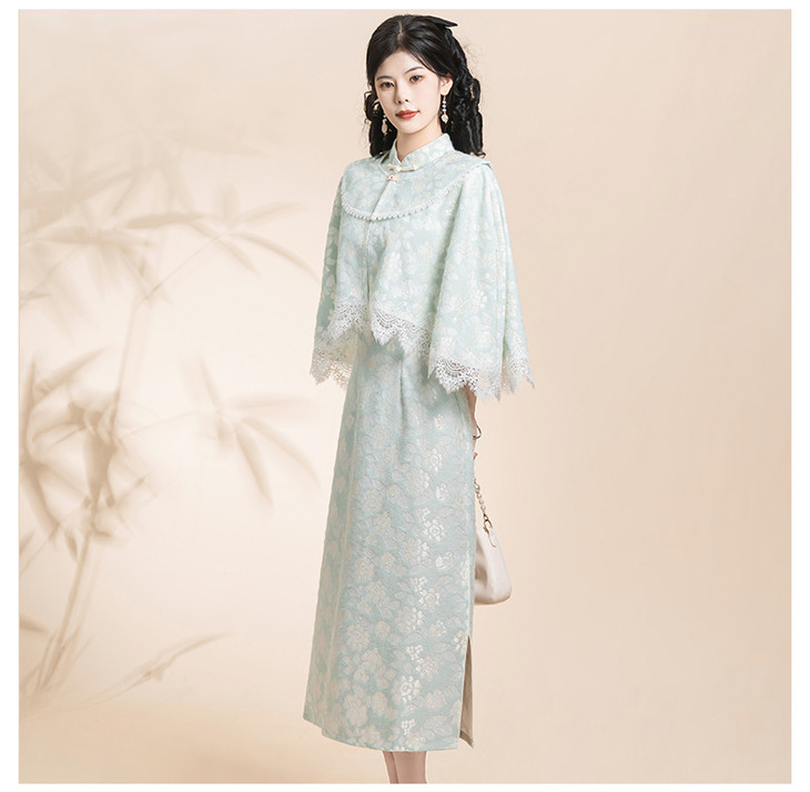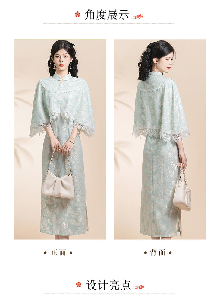 蓝色小清新旗袍,气质少女披肩套装改良KK0801
