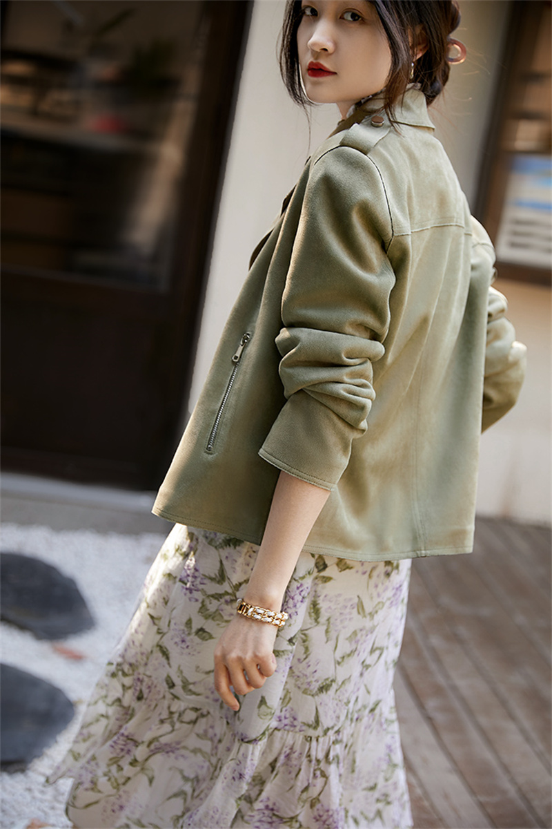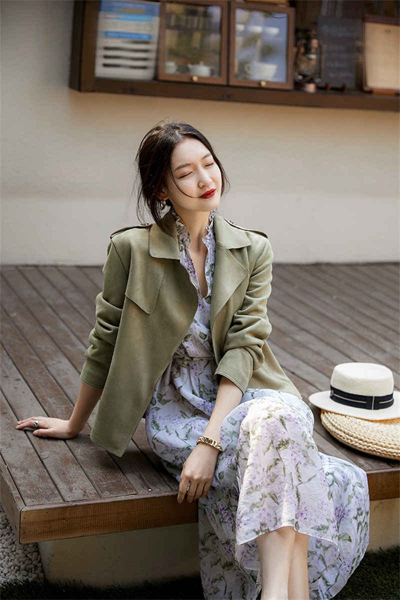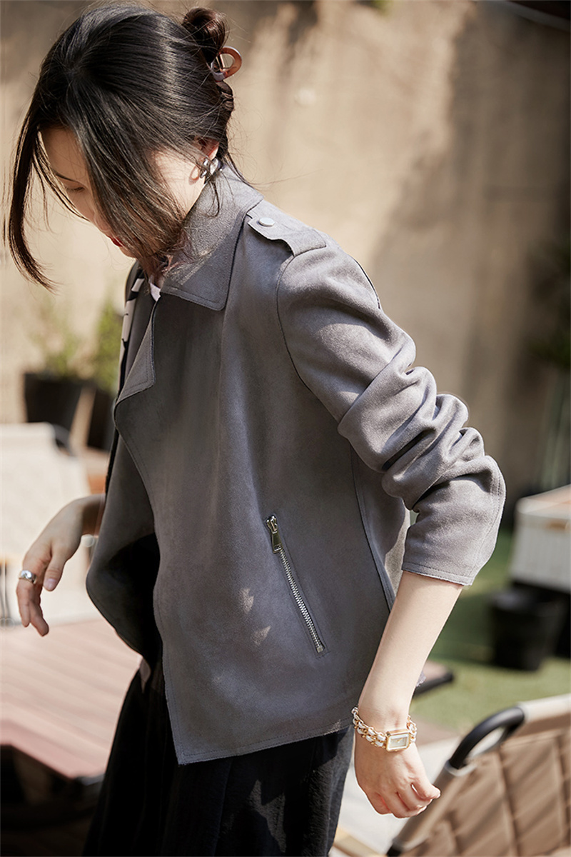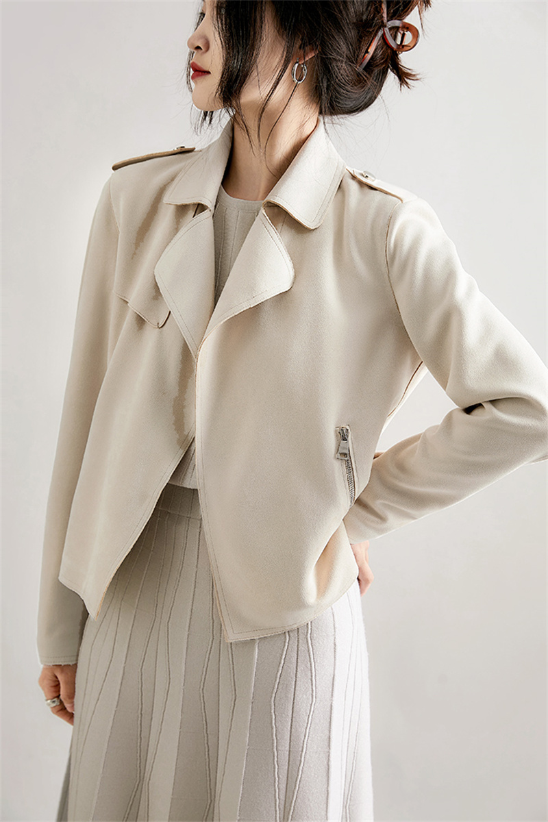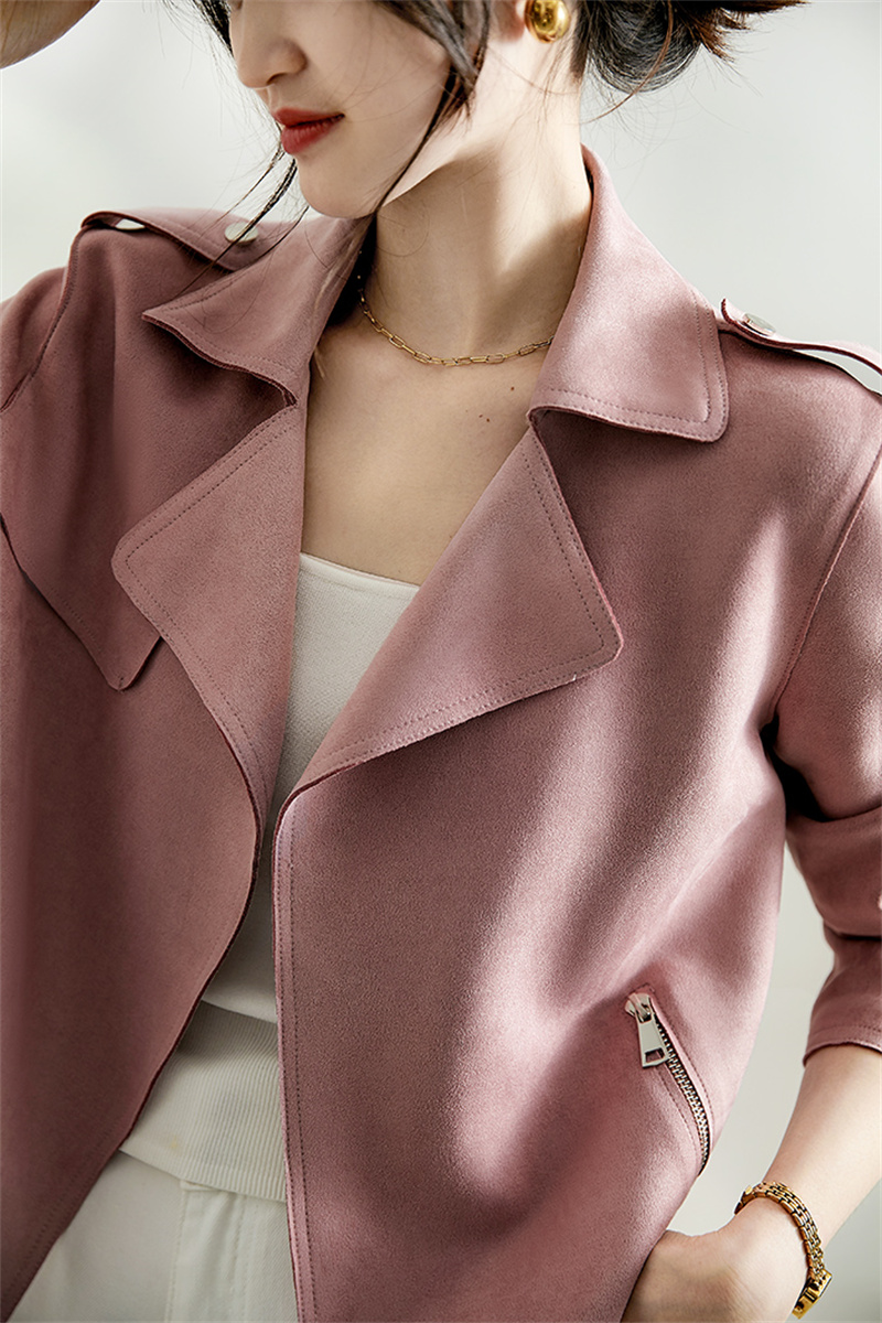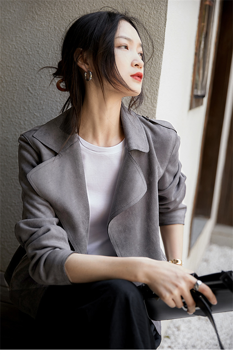FEIMI春季繁花氛围感仿雪花麂皮绒短款风衣 货号:B2444