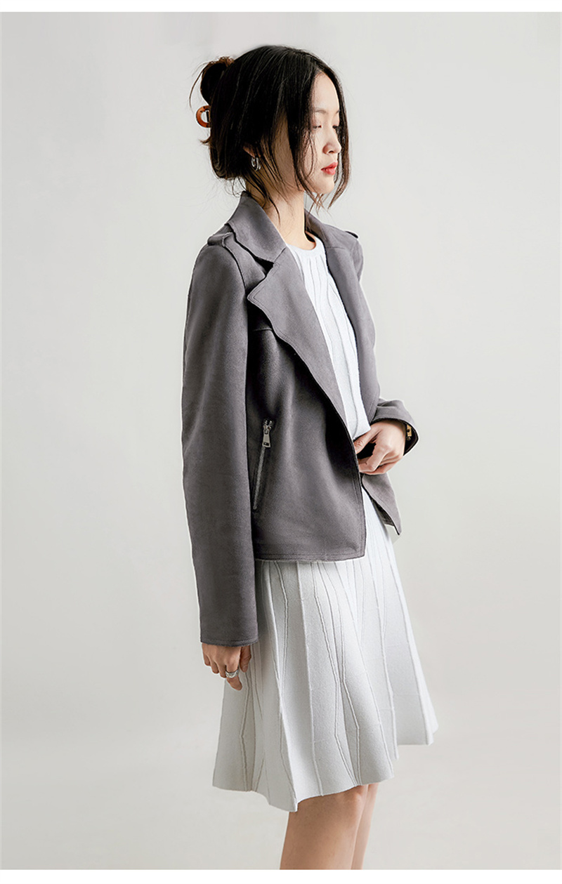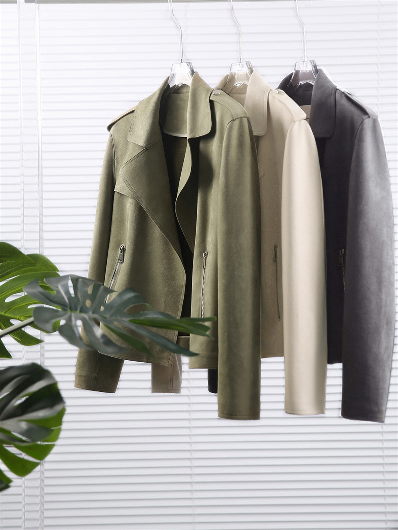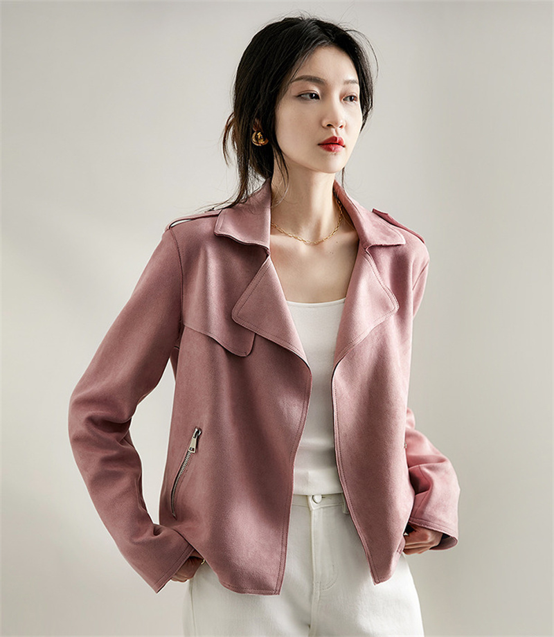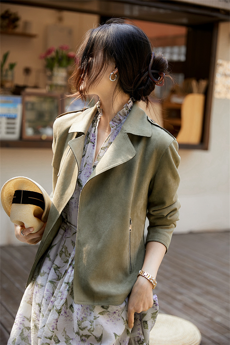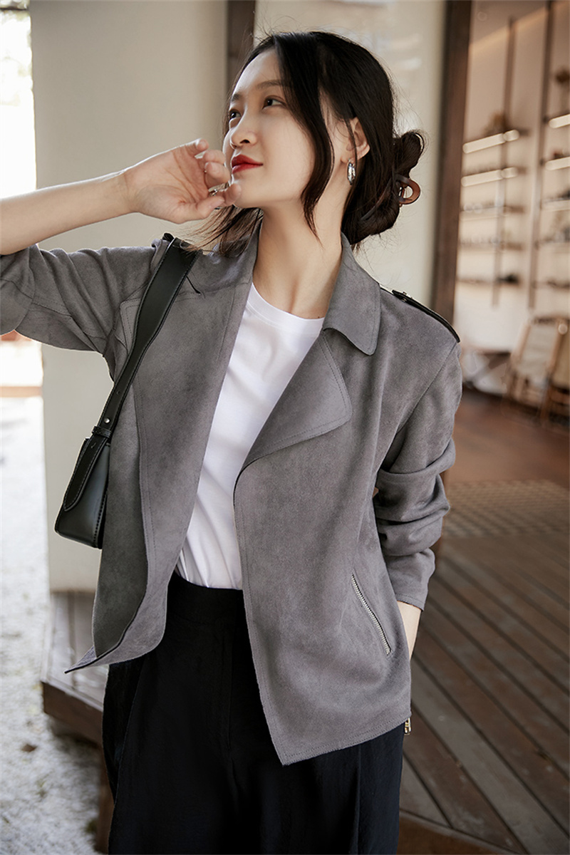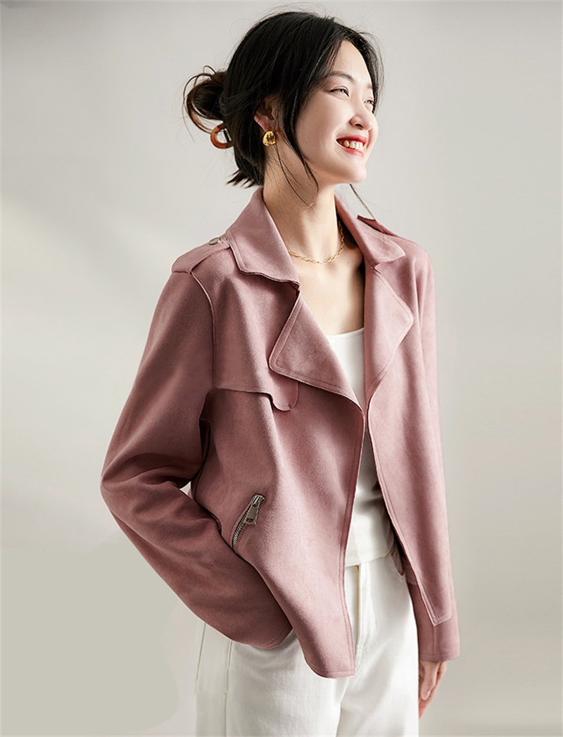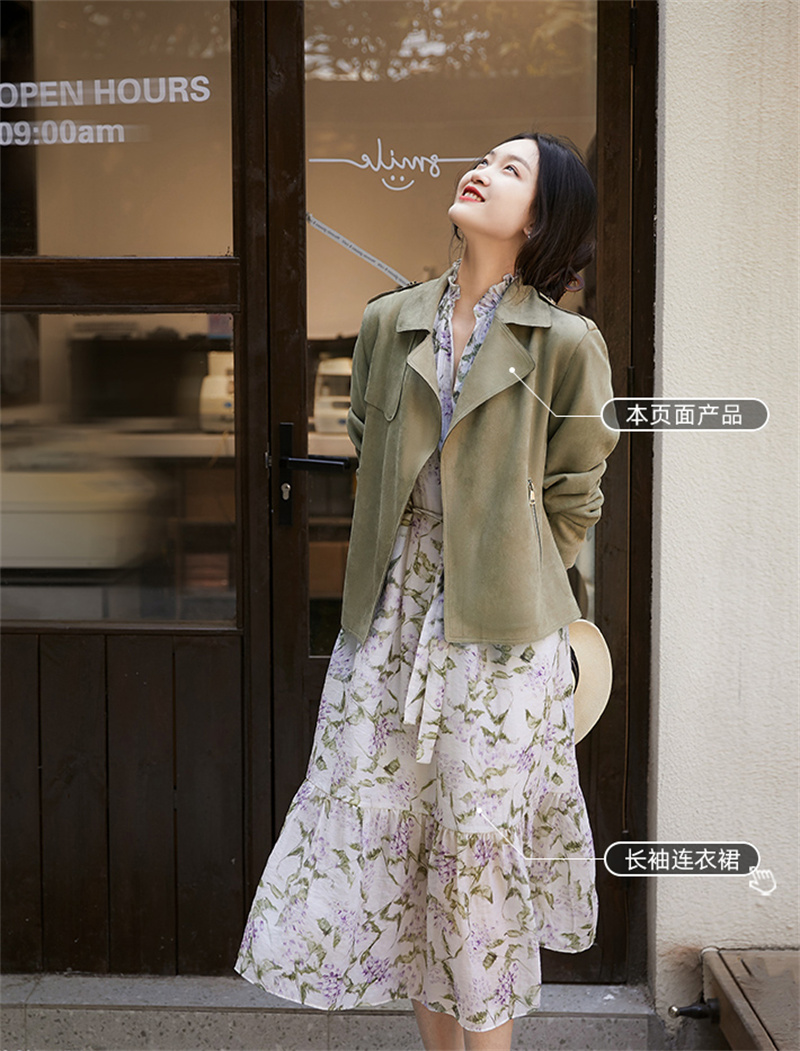 FEIMI春季繁花氛围感仿雪花麂皮绒短款风衣 货号:B2444