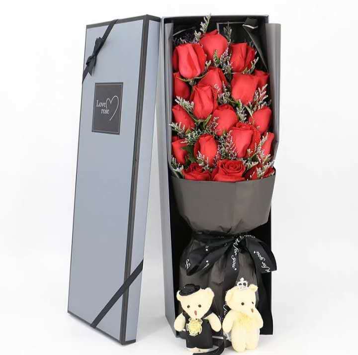 花材:19支红玫瑰,情人草搭配,55cm礼盒