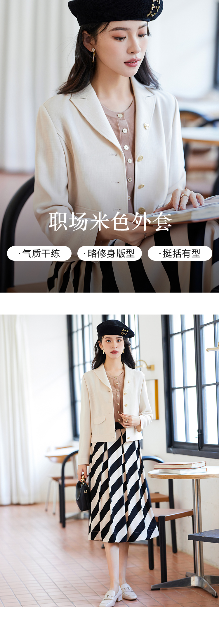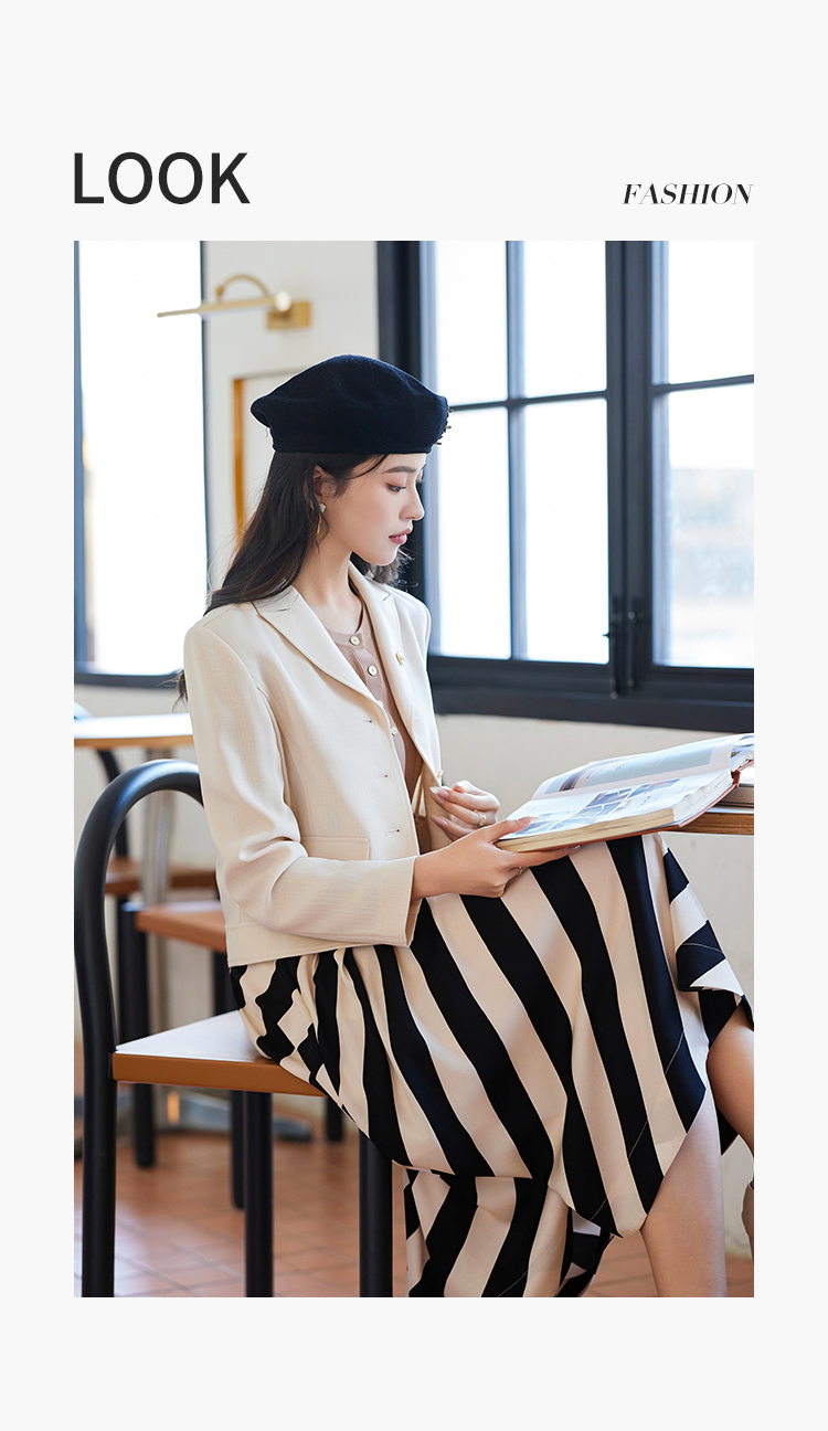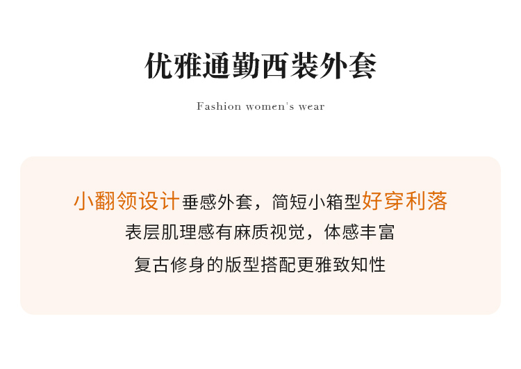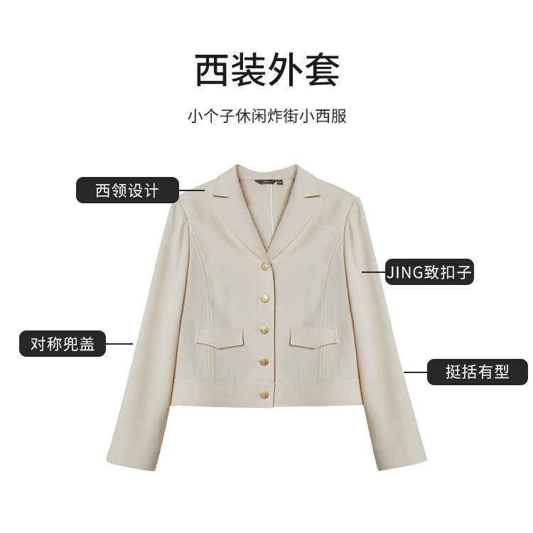 【商场同款】CJJJ317 “暖杏色短款翻领外套” 醋酸纤维原材料 自带肌理感 自然环保 色系柔和 彰显女性素净而温婉气质