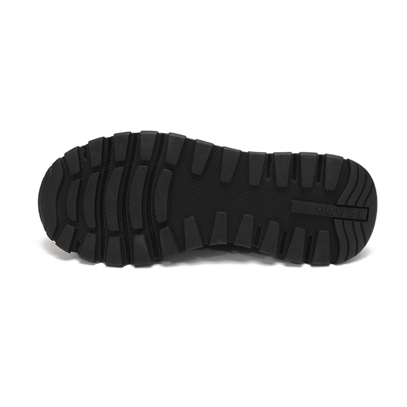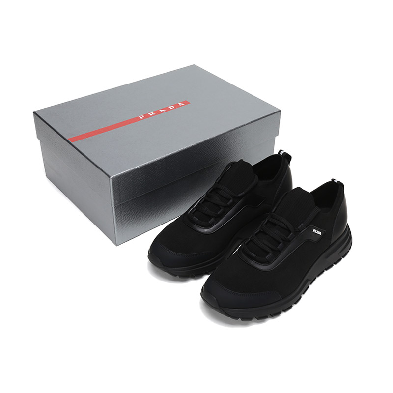 品牌:PRADA/普拉达产地:意大利等国(批次不同、产地不同)款式:男士颜色:黑色材质:鞋面:织物/橡胶;鞋底:橡胶;内里:织物配皮结构:鞋长约29cm,鞋宽约11cm,跟高约4cm(此为5码测量)