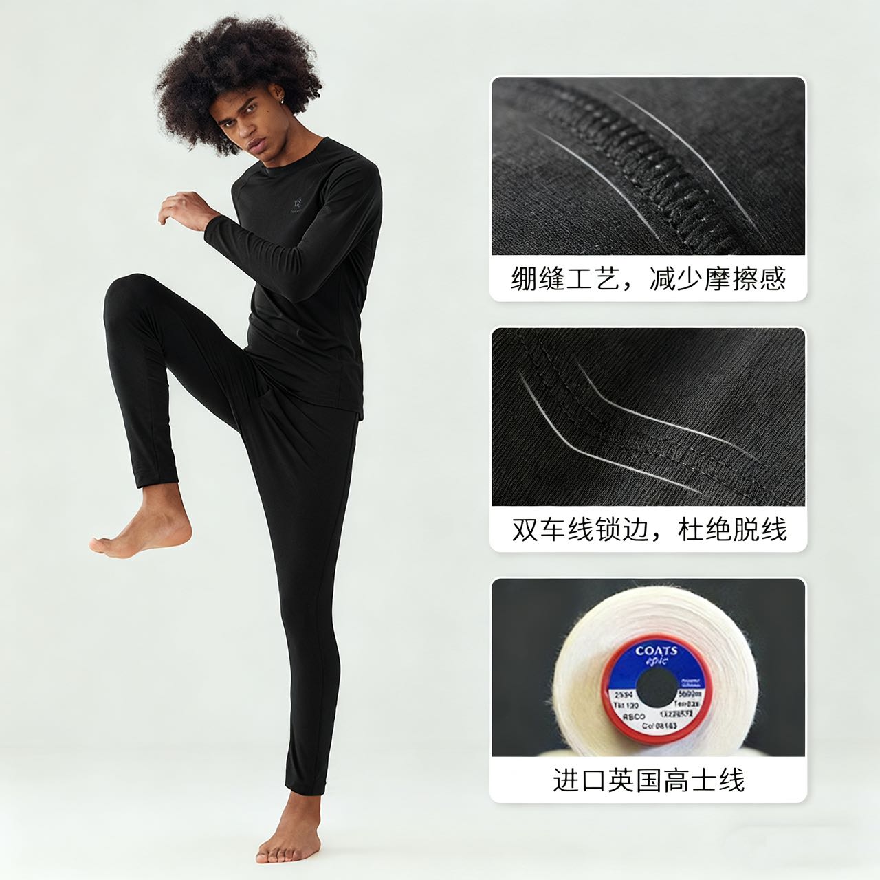 秋冬内衣裤套装Coolmax速干保暖排汗功能户外运动套装男款!!45%棉10%氨纶45%锦纶混纺。 上衣➕裤 礼盒套装