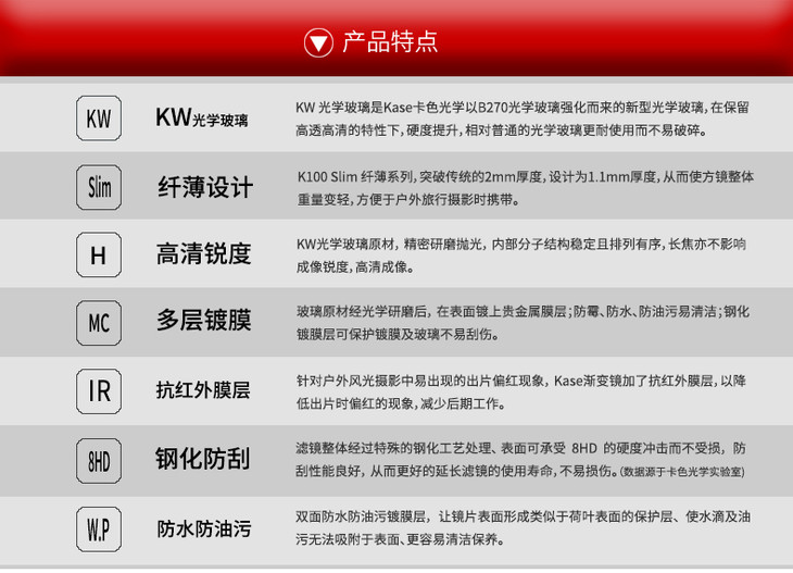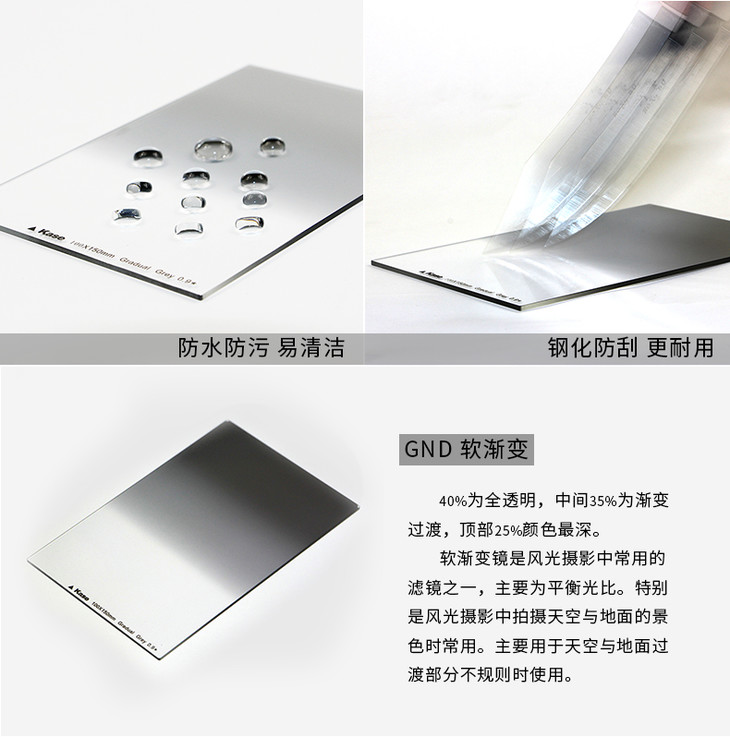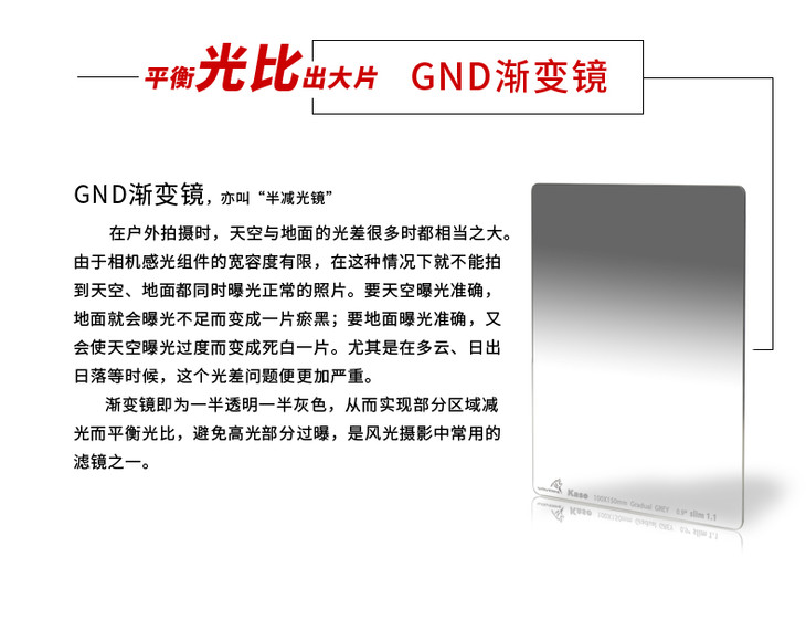 Kase卡色 方形渐变镜 中灰渐变镜GND软硬反向 100x150mm 插片滤镜