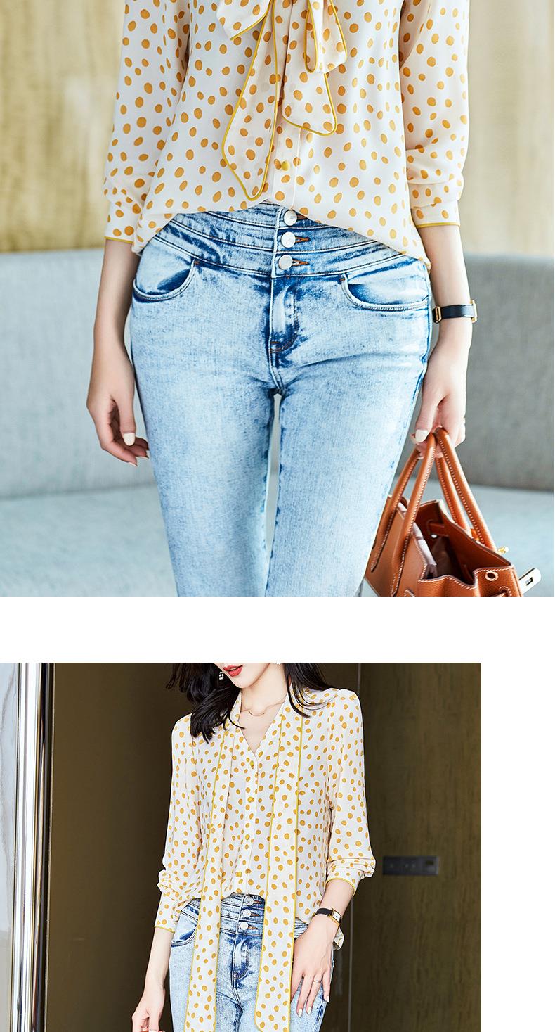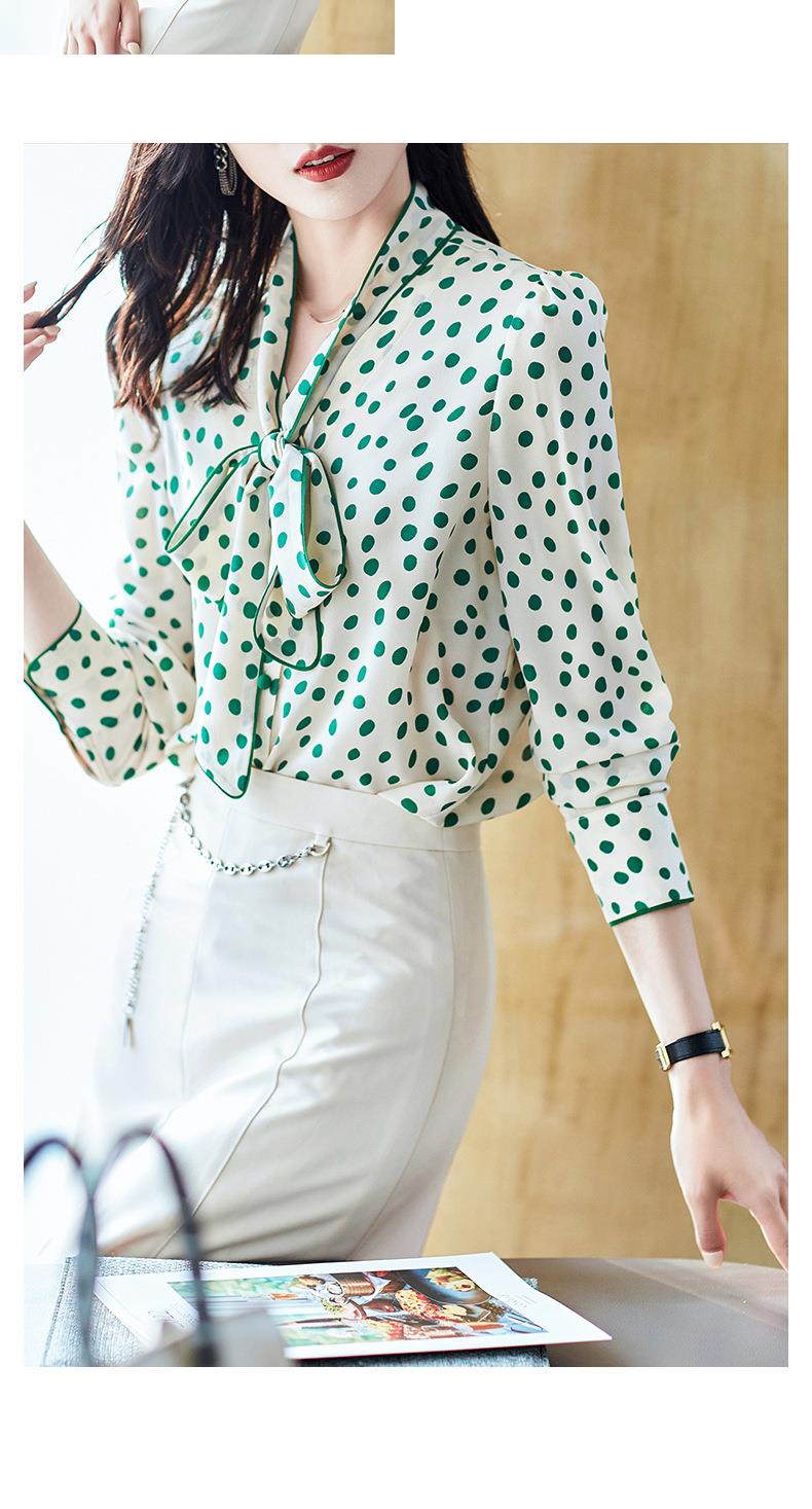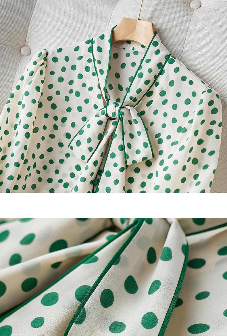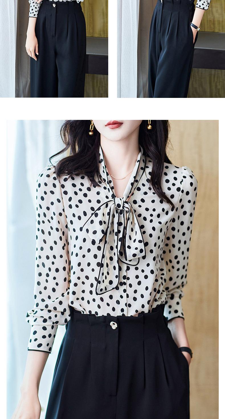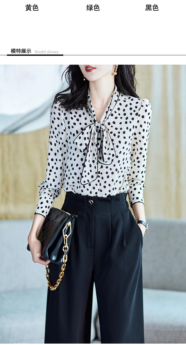 2023秋装新款衬衫女长袖宽松雪纺衫波点女士衬衣A2368