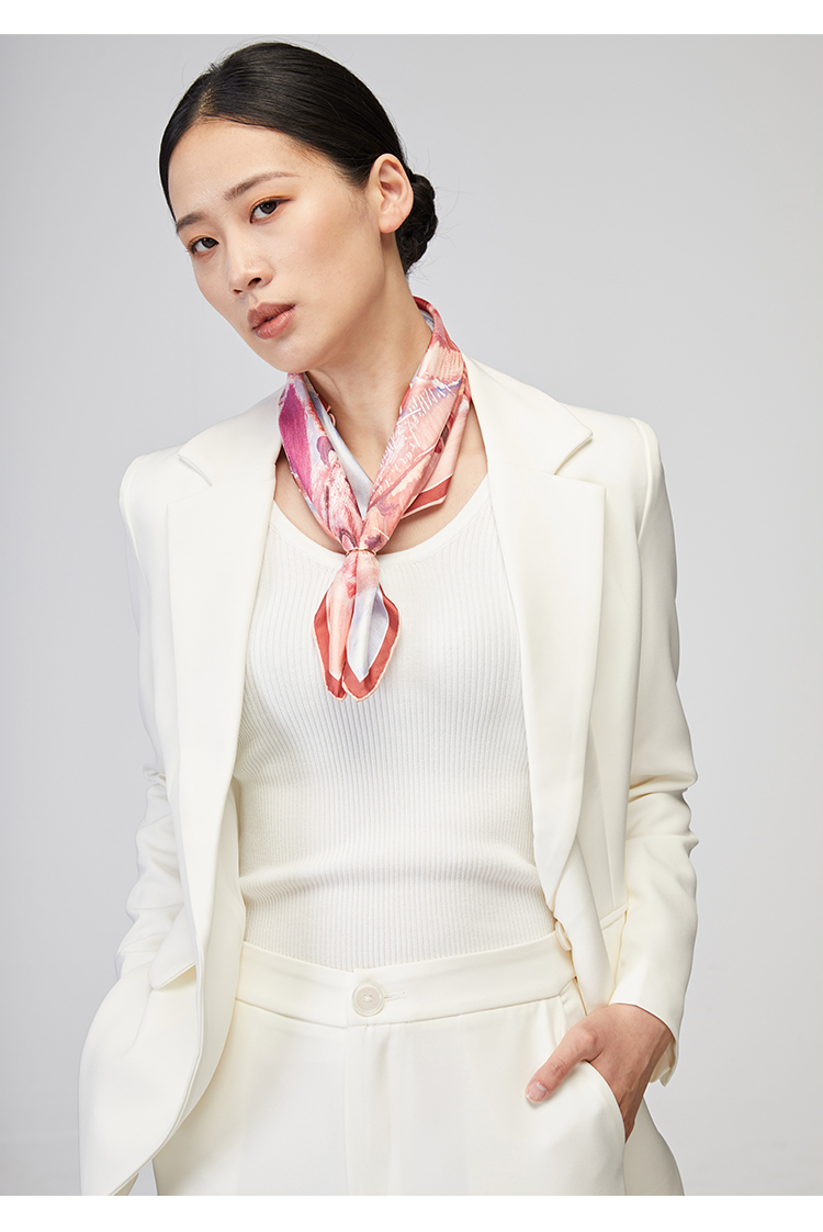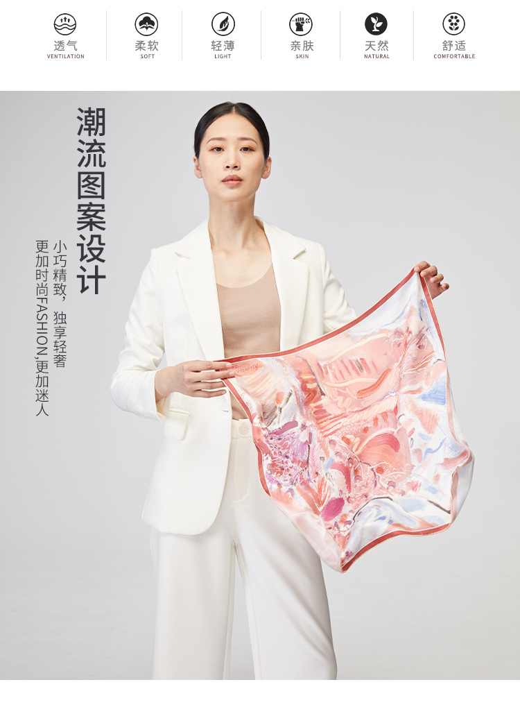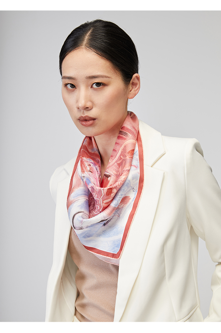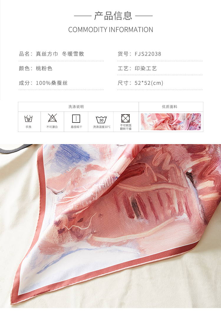 SAINTJOY/上久楷 女式真丝方巾 冬暖雪散 FJS22038