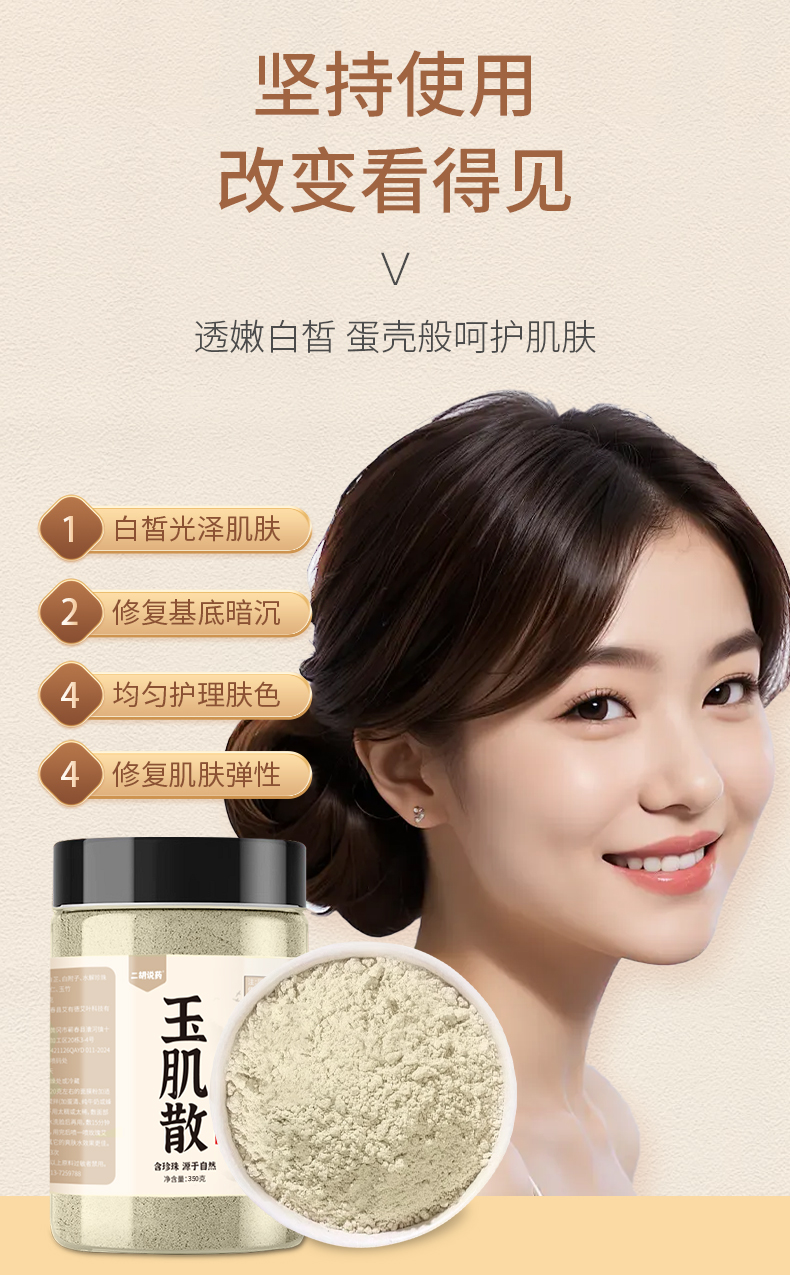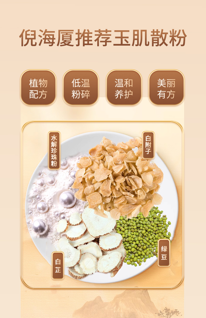成 分: 绿豆、白芷、白附子、水解珍珠粉、白僵蚕、薏仁、玉竹