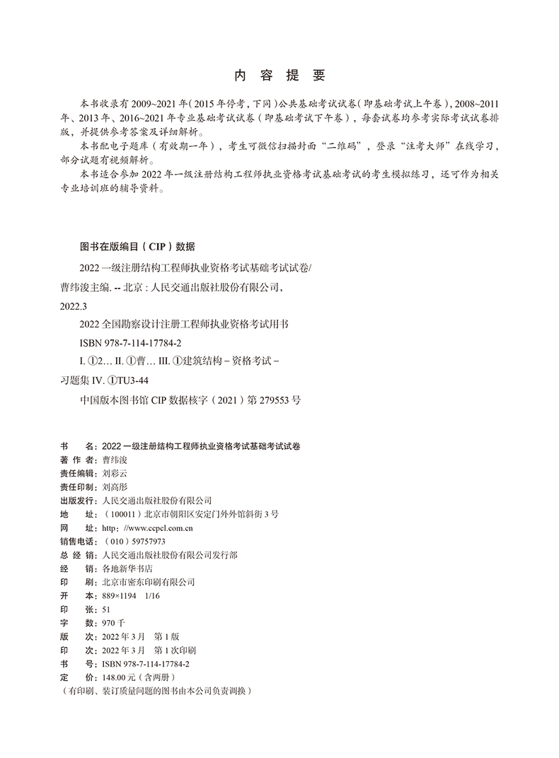 书名:2022一级注册结构工程师执业资格考试基础考试试卷