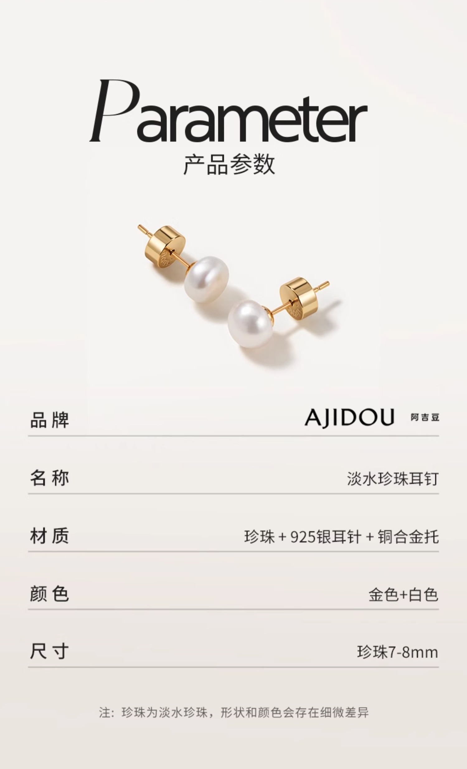 [小滋心选]【活动价 ¥49.9 ¥59.9 ¥69.9】AJIDOU 阿吉豆时尚通勤精致小巧高级感耳环耳钉