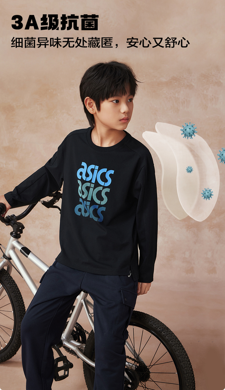 Asics/亚瑟士童装运动长袖T恤吸湿速干抗菌内搭长袖T恤25年春新款
