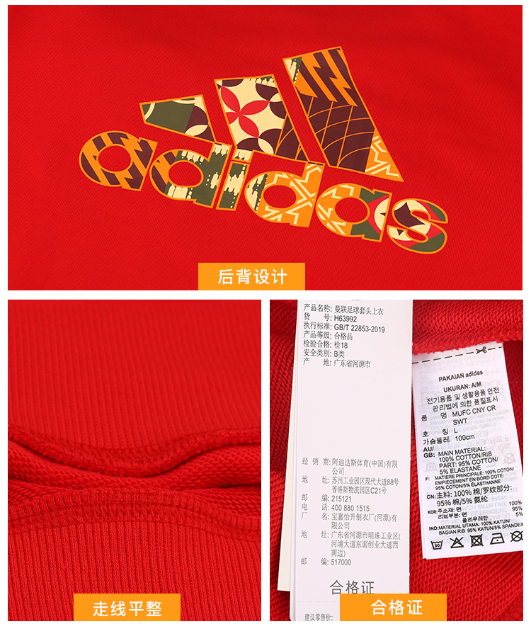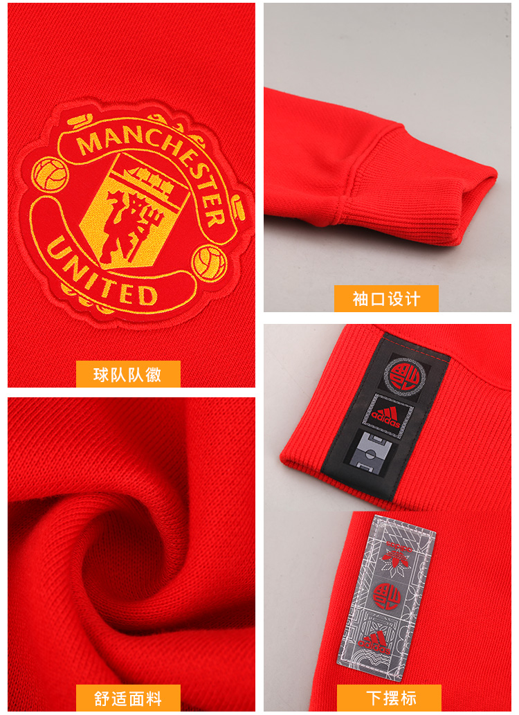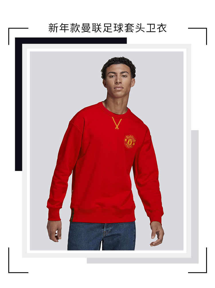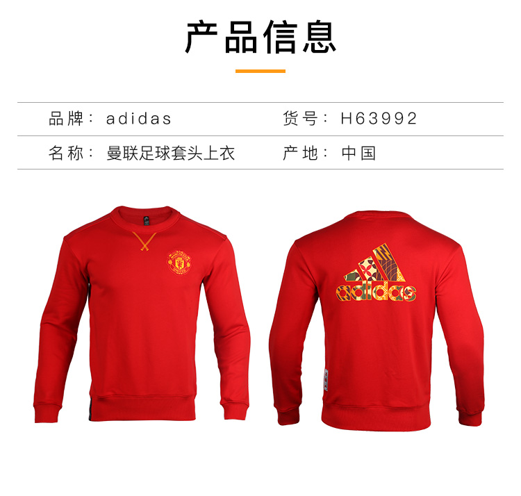 ADIDAS/阿迪达斯曼联足球运动休闲套头成人卫衣男H63992