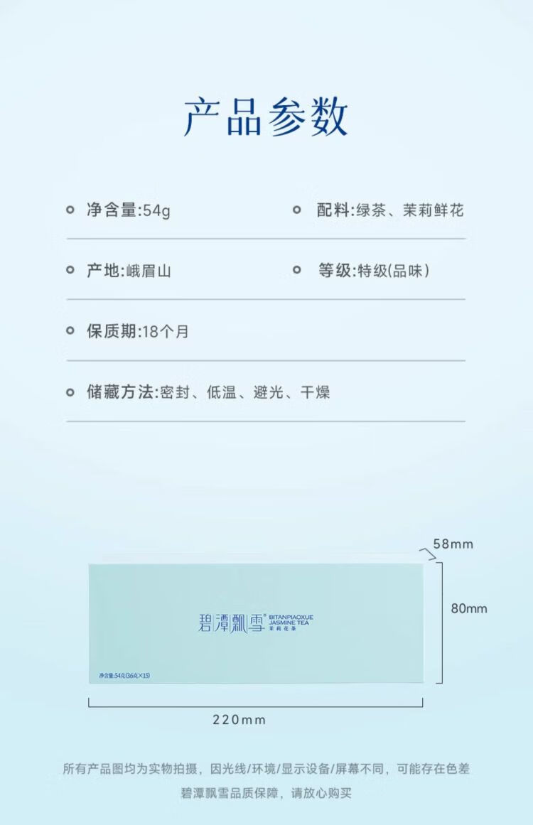 【促】碧潭飘雪品味 茉莉花茶特级54g/盒 商品缩略图0 【促】碧潭飘雪品味 茉莉花茶特级54g/盒 商品缩略图1 【促】碧潭飘雪品味 茉莉花茶特级54g/盒 商品缩略图2 【促】碧潭飘雪品味 茉莉花茶特级54g/盒 商品缩略图3 【促】碧潭飘雪品味 茉莉花茶特级54g/盒 商品缩略图4